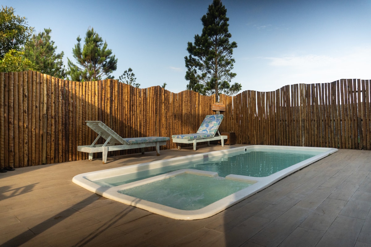 Somos um village com três chalés, cada um com duas suítes e varanda com vista para o mar. No térreo, você encontra sala, cozinha completa e um banheiro social, tudo pensado para facilitar a sua estadia. Os chalés compartilham uma piscina com hidromassagem e uma área gourmet integrada. O espaço fica no Mirante da Serra, um dos pontos mais bonitos de Serra Grande, oferecendo tranquilidade, boa energia e uma vista privilegiada.