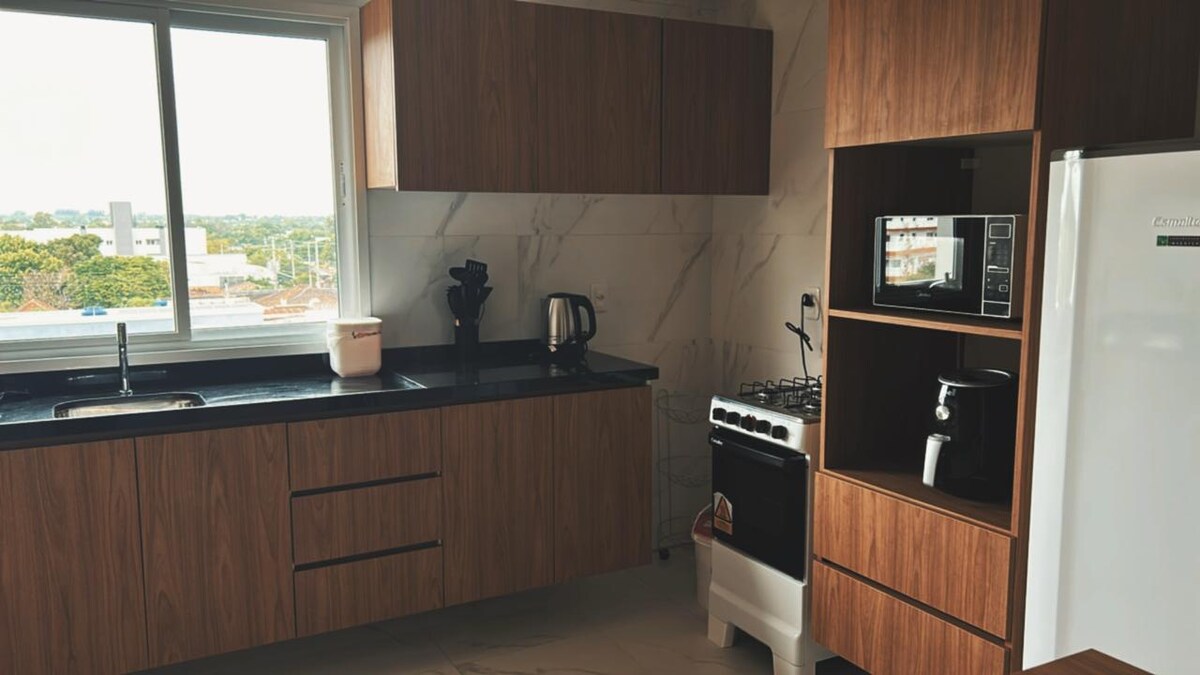 Apartamento de edificio nuevo en el barrio más exclusivo de Uruguaiana. Junto al hermoso río Uruguay y a pocas cuadras de las tiendas gratuitas, restaurantes, farmacias, bancos, tiendas y organismos públicos. Ideal para aquellos que viajan con la familia o por negocios. El departamento de tres dormitorios es uno de ellos suite, sala de estar, cocina, agua caliente, chimenea, barbacoa, TV por cable, internet wifi, aire acondicionado dividido en las habitaciones. Edificio con ascensor, garaje. Fácil acceso al aeropuerto o a la aduana de Brasil/Argentina.
