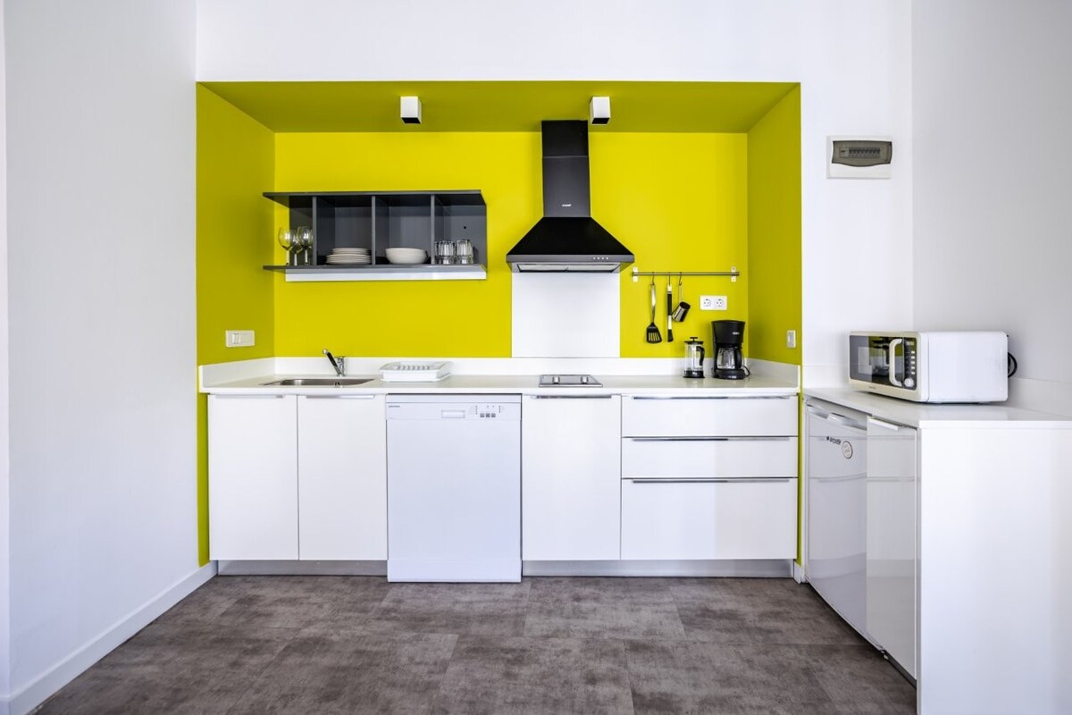 Cocina, estacionamiento, gimnasio – Apartamento de diseño moderno de 1 dormitorio