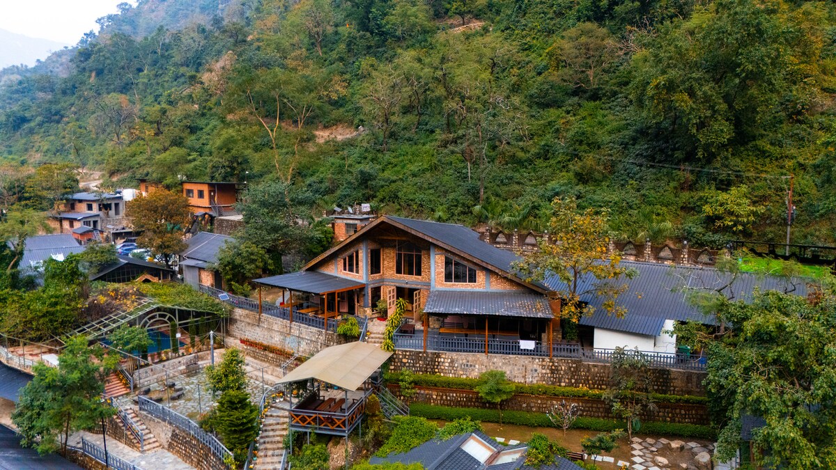 Set along a serene river at a peaceful, pet & senior-citizen friendly resort, this 2-bedroom suite features large glass windows and private balconies that frame picturesque river and mountain views. Outdoors, guests can unwind amid landscaped gardens, riverside seating, a gazebo, a cabana, and a shared pool with a dedicated kids’ pool. Delight in delicious meals at the on-site restro, which offers thoughtfully designed indoor & outdoor seating, ideal for intimate meals immersed in nature.