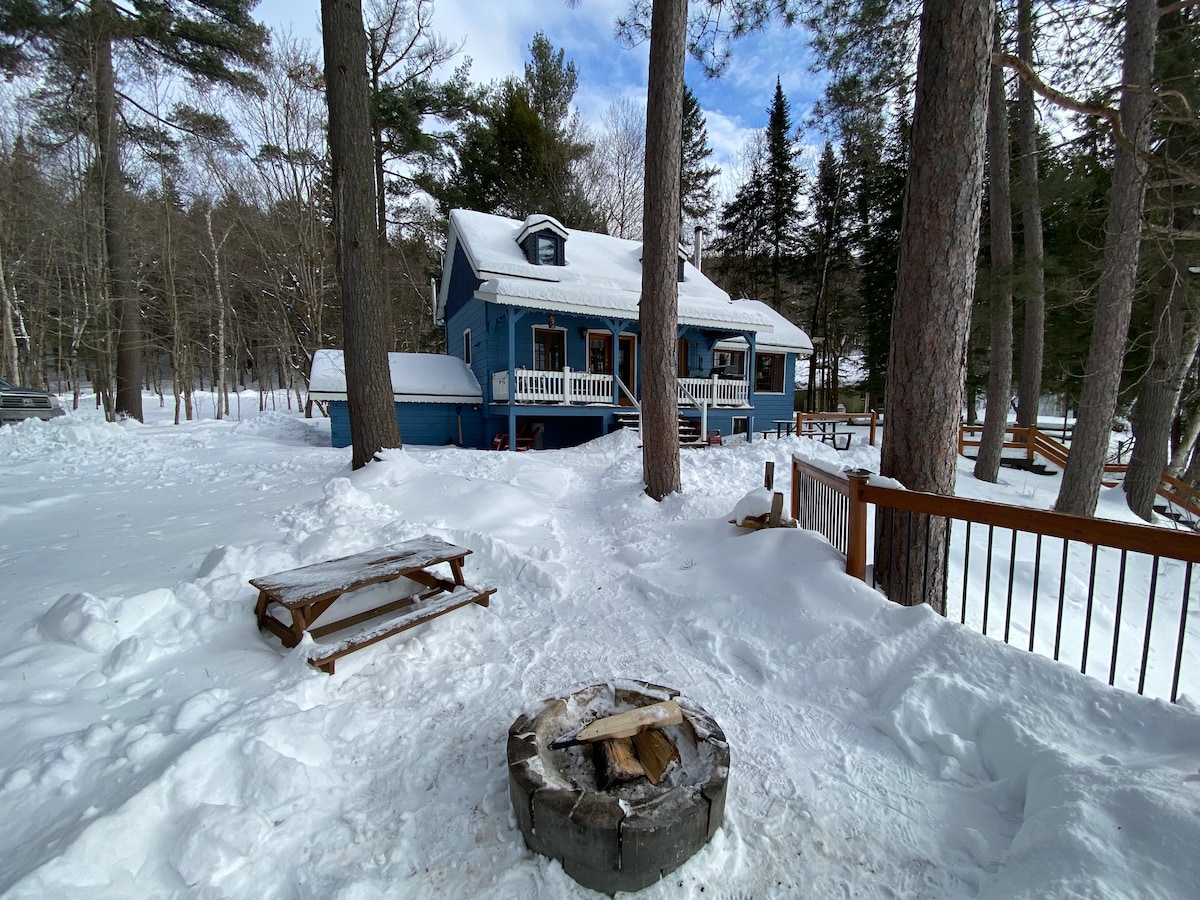 -Orilla del agua en un lago navegable tranquilo. Venga a relajarse, disfrutar de la puesta de sol, una chimenea exterior e interior y el carril bici. -Un lugar en el muelle para su barco, hidropedales, paddle board a su disposición. Bienvenidos los amantes de la pesca en hielo y el patinaje. Pista de «ski-doo», bicicleta de montaña y esquí de fondo cerca -bien ubicado para los amantes de la caza. -restaurante, tienda de comestibles y tienda a 15 minutos en coche -2 camas Queen, 2 literas individuales y un sofá cama