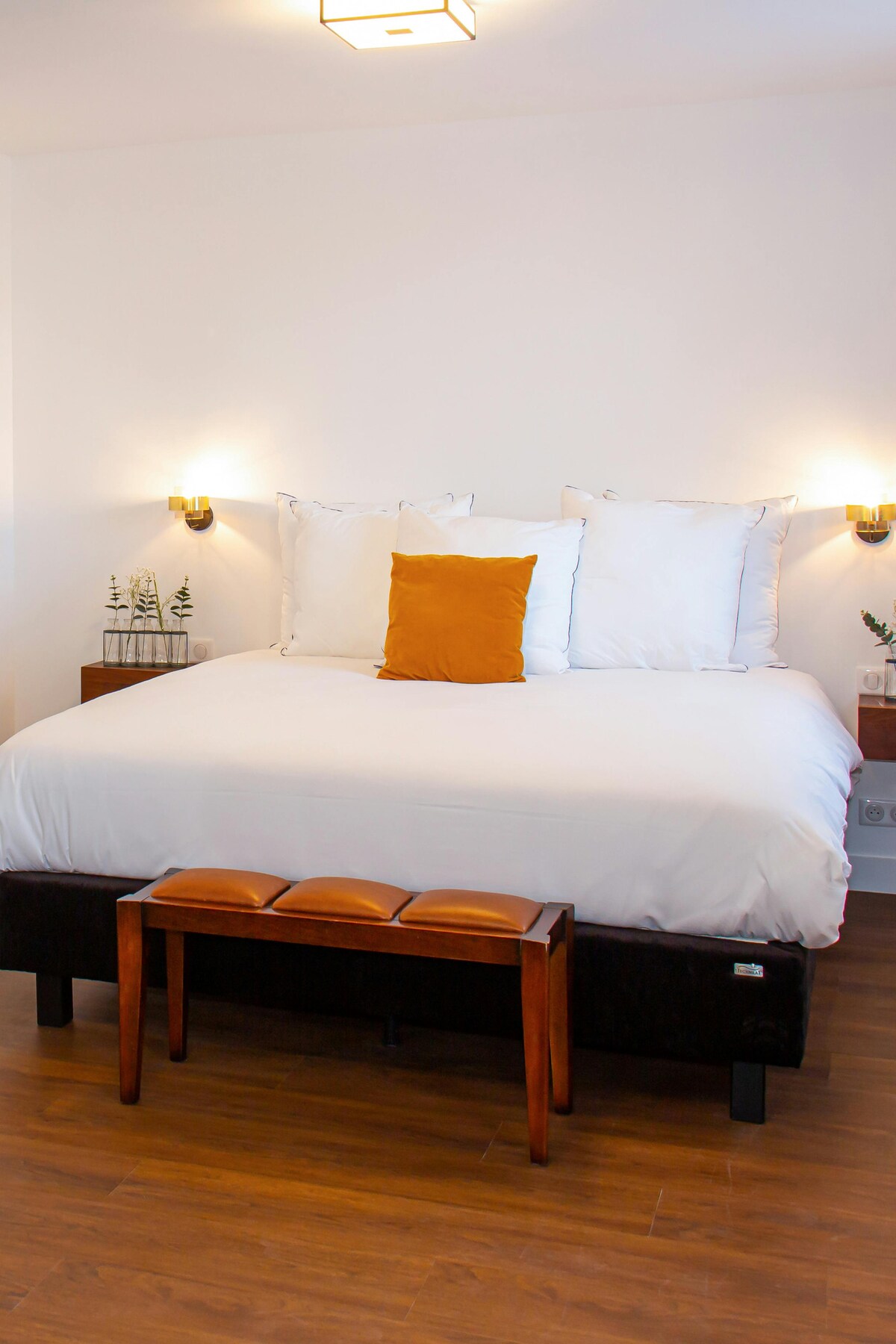 Thoughtfully designed to provide optimal comfort and accessibility, this peaceful cocoon is tailored to meet the needs of our guests with reduced mobility. With 21m² of space, the room features a fully accessible bathroom equipped with Japanese-style toilets, a walk-in shower with a support bar, a smart mirror, and a Queen-size Hypnove memory foam bed (160x200, tested by the Sleep and Alertness Center – guaranteed to enhance sleep quality).