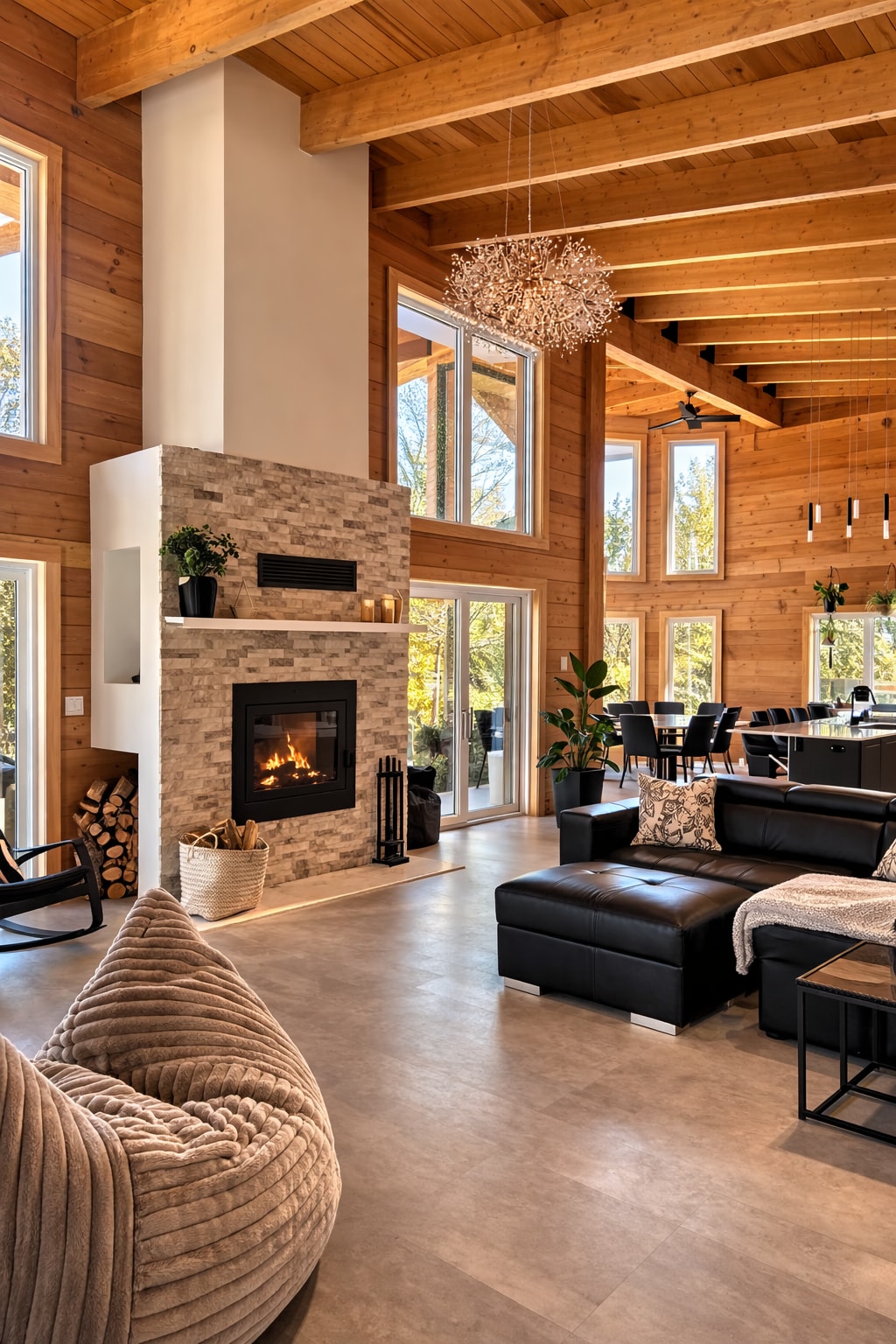 💎 UN CHALET HAUT DE GAMME -4 chambres spacieuses -Grande aire ouverte avec îlot en quartz -Table pouvant accueillir 12 personnes et plus -Salle multifonction (formation, yoga, détente) -Spa extérieur 7 places -Sauna intérieur avec plancher chauffant -Foyer intérieur et extérieur Un véritable espace pour relaxer en toute saison. -Accès direct au lac -Activités estivales et hivernales -Accès aux sentiers de motoneige -Grand stationnement (remorques acceptées) -Laveuse / sécheuse Climatisation