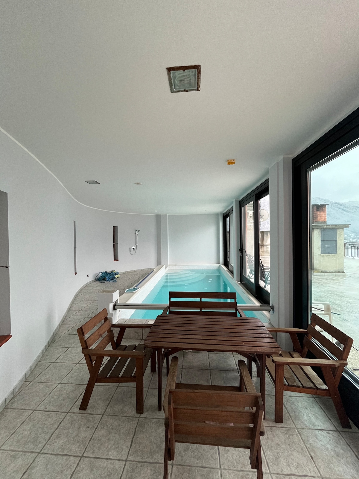 Independent private guest space with a wood-burning fireplace in a mountain boutique guesthouse. The space offers privacy and comfort, with a private equipped kitchen. It can be booked on its own or combined with additional private rooms when travelling with more people, with the price adjusting accordingly. Guests have access to shared outdoor spaces, including gardens, patio, BBQ area, and a warm outdoor bathtub.