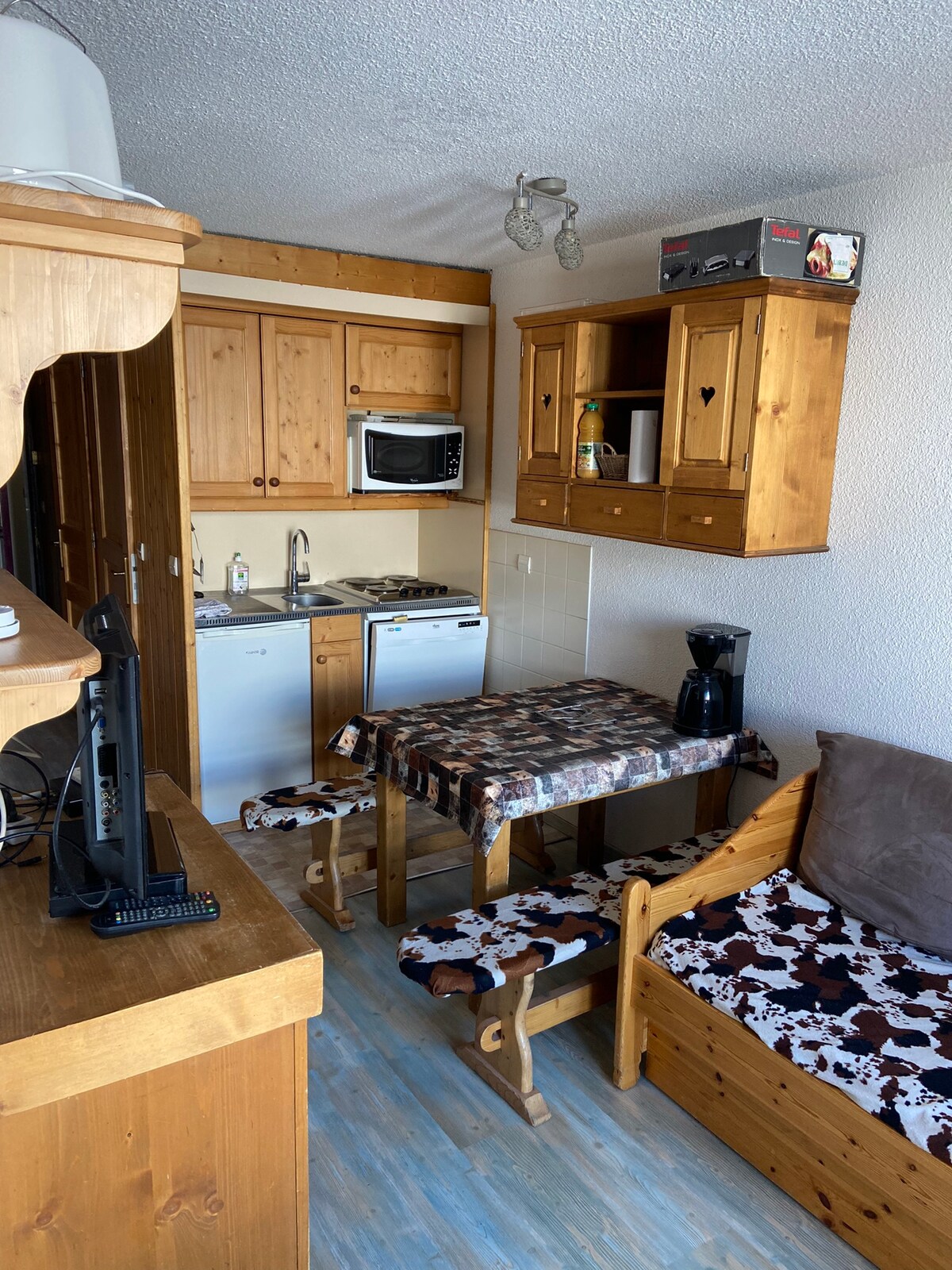 Apartamento recién reformado, cómodo y cálido, idealmente situado en el centro de la estación. Tiene capacidad para 4 personas, con una litera y un gran sofá cama. Disfrute de una cocina totalmente equipada, un balcón orientado al sur/oeste y un cuarto de baño con ducha muy cómoda. Accesible a pie desde el inicio y el final de las pistas, es ideal para estancias en familia o con amigos. Se incluyen sábanas y toallas para 4 personas. Armario de esquís