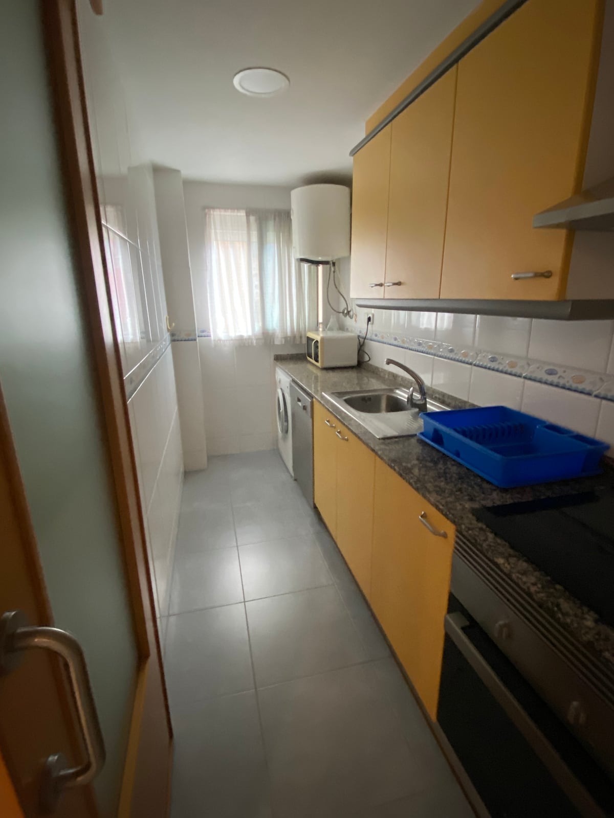 Apartamento de 68 m2 reformado, en esquina, muy luminoso y ventilado. Situado en 2ª planta de fácil acceso, cómodo y bien equipado, con salón-comedor y balcón con vistas, cocina abierta al salón, frigorífico, horno,microndas, tost., lavadora, tv 32" y cafetera cápsulas. Aseo con ducha, 3 amplios dormitorios con mucho espacio para ropa, uno con cama de 150, otro con 2 camas de 90 y el último con cama de 105. Posibilidad de cuna sin cargo. No se admiten mascotas, ni permiten fiestas privadas.