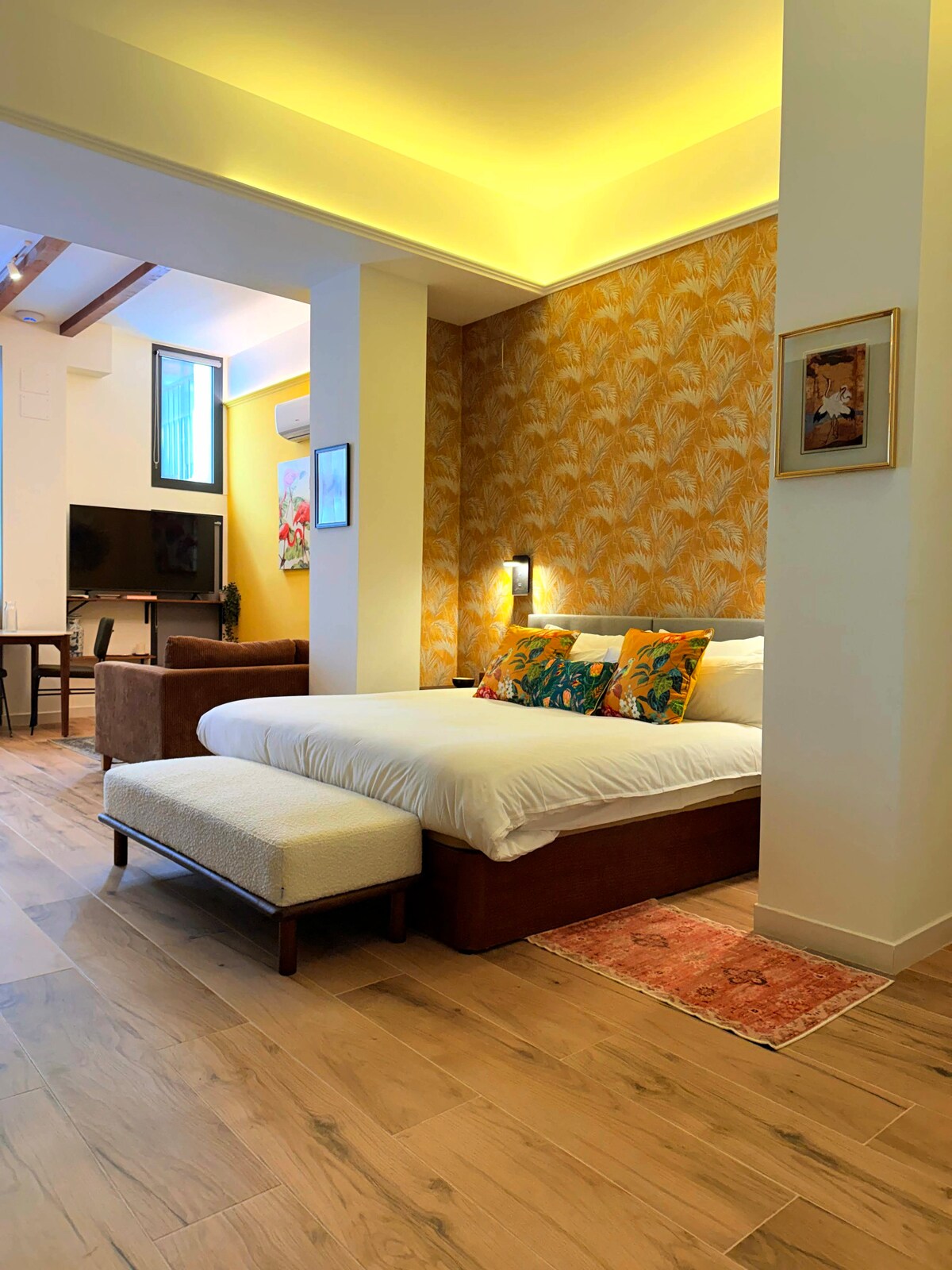 Bienvenido a Sumsi28 Boutique Apartments, un elegante estudio situado en el corazón de Ruzafa, Valencia. El apartamento combina diseño contemporáneo, comodidad y una ubicación excepcional. Dispone de cama king size, zona de estar, Smart TV y cocina equipada. Su decoración cálida y cuidada crea un ambiente acogedor ideal para relajarse después de explorar la ciudad. Rodeado de restaurantes, cafeterías y cultura, es el lugar perfecto para descubrir Valencia con estilo.