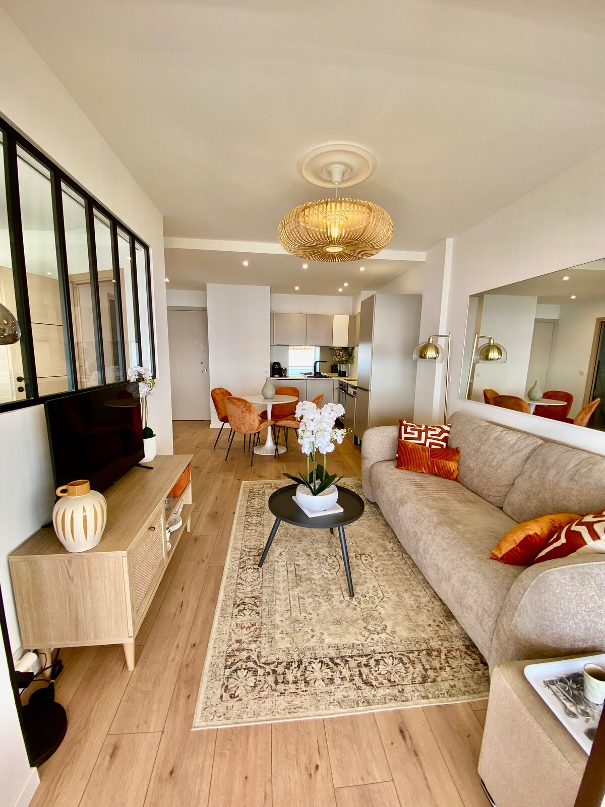 Apartamento elegante y tranquilo, reformado, estilo cocooning. Dispone de todo lo necesario para el día a día. Situado en el centro de Golfe-juan, a 800 metros de las playas y cerca de todos los servicios (autobús, estación de tren, farmacia, supermercado...) Esta propiedad está idealmente situada, a solo 10 minutos de Cannes. Hay plazas de visitantes en el interior de la residencia, y 3 aparcamientos públicos gratuitos la rodean. Residencia de lujo segura con cuidador. Limpieza reforzada COVID
