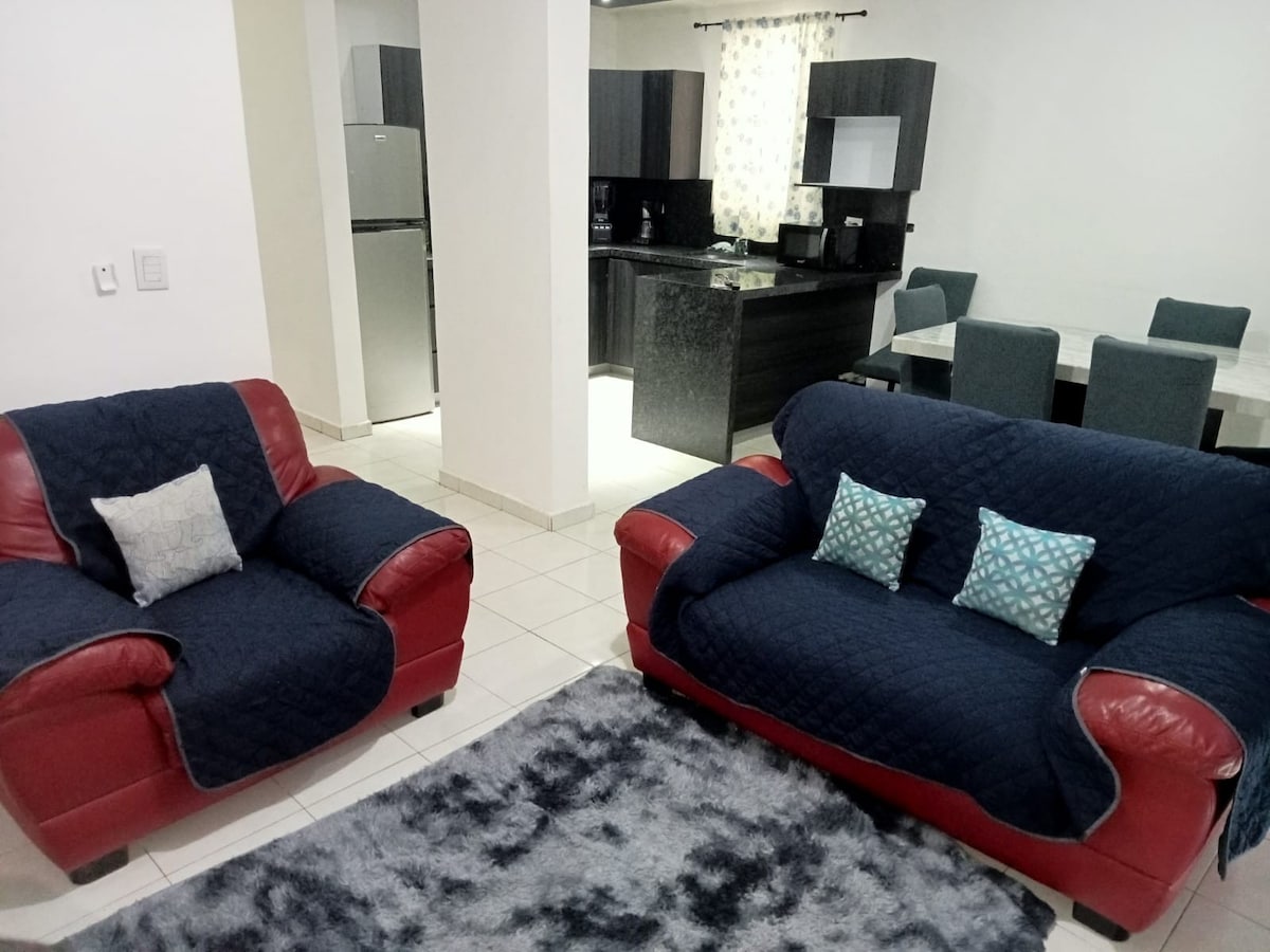 Relájate en familia en este alojamiento donde la tranquilidad se respira en una de las mejores zonas en cumbres que ofrece vista a las montañas . Ofrece conexión Wi-Fi gratuita y rápida en todas las áreas del alojamiento. -Dispone de televisores de pantalla plana en todas las habitaciónes y sala. -Netflix, Vix en sala y Roku en pantallas. - Cuenta sistema de climatización y abanicos de techo para que los huéspedes puedan disfrutar de un ambiente cómodo y relajante. - Aire lavado portátil.