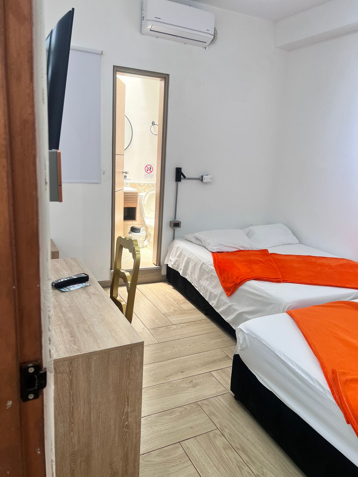Hospédate en una habitación privada con cómoda cama doble, baño propio, aire acondicionado, TV, minibar y wifi rápido. La reserva incluye acceso a las zonas comunes: cocina equipada con cafetera, terraza y hamaca. Contamos con vigilancia 24/7 y restaurante en el hotel. No tenemos parqueadero, pero te recomendamos uno cercano (costo aparte). Ideal para viajes de trabajo o descanso en el norte de Cali.
