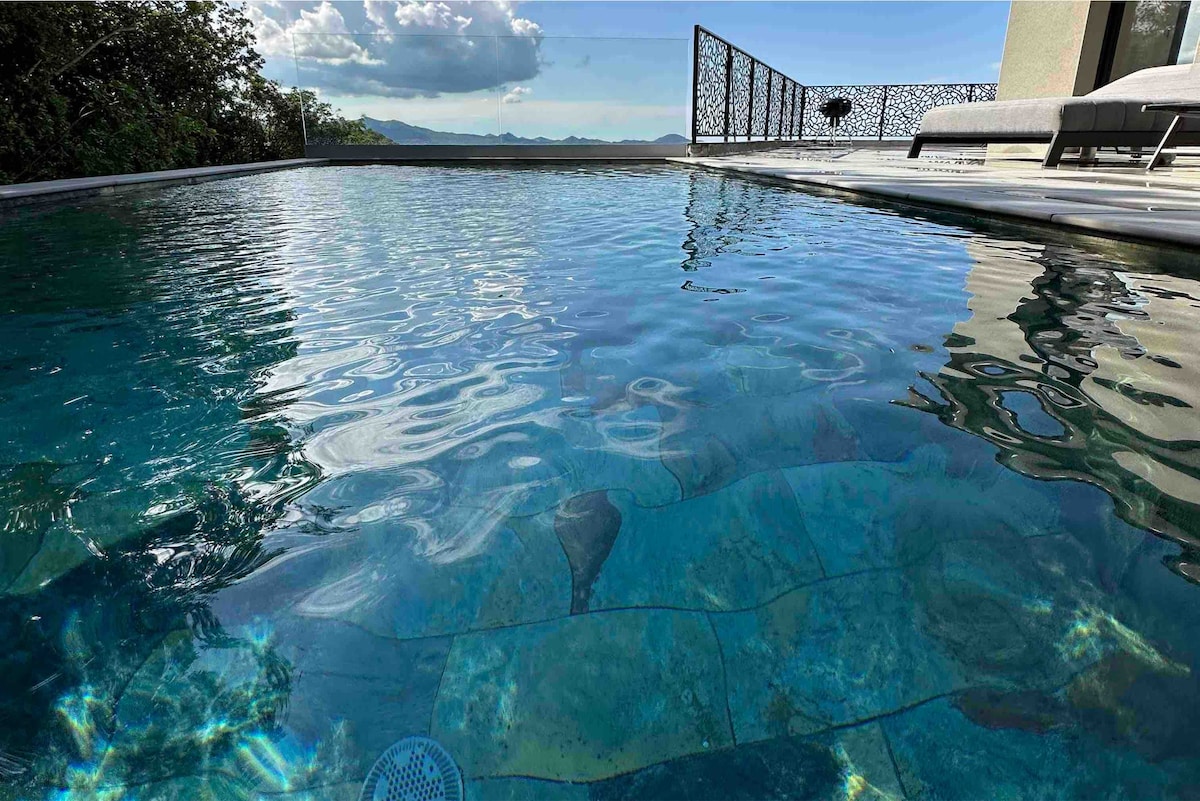 Residencia de piedra entre el mar, la montaña y la piscina.