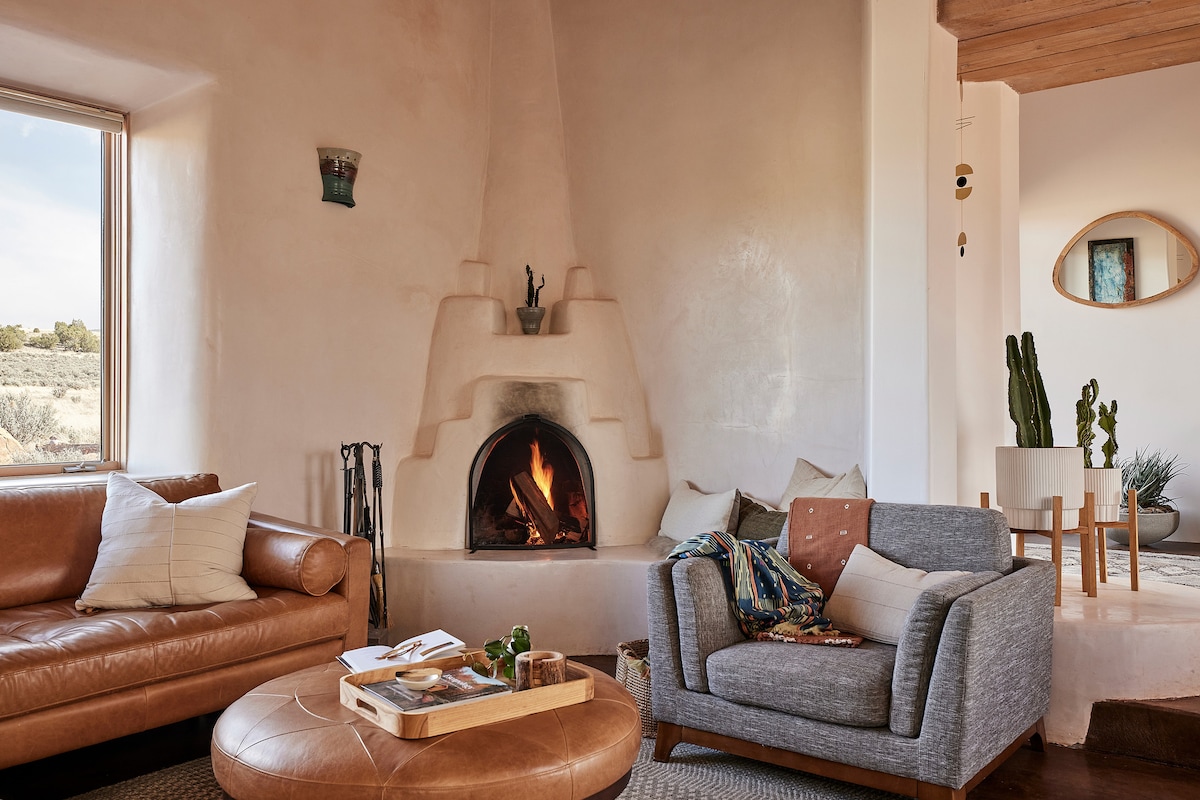 Adobe refinado con vistas a la montaña, jacuzzi y fogata