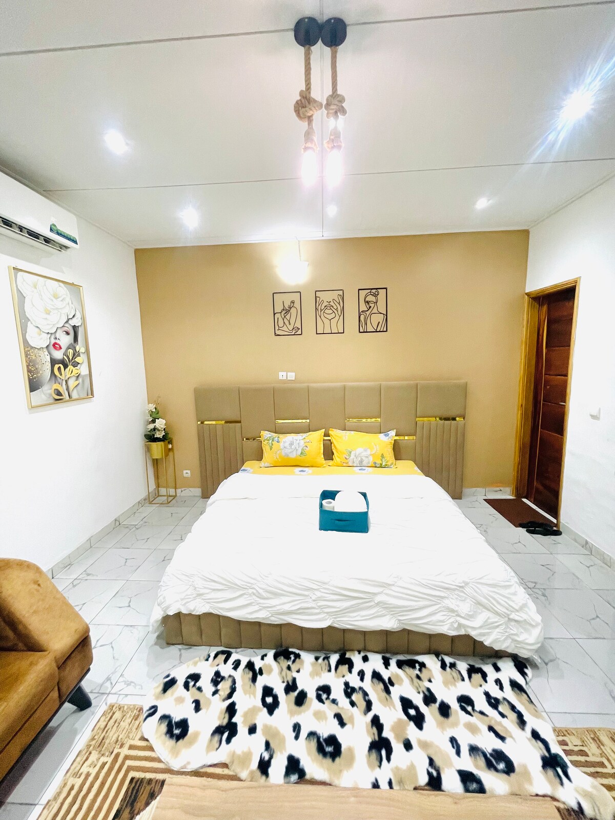 Residencia Baraka - Bouaké Descubra la Residencia Baraka, un remanso de paz situado en Bouaké Air France 3. Este lugar combina perfectamente elegancia, comodidad y modernidad. Nuestra amplia habitación con una cama de 3 plazas está equipada con aire acondicionado, televisión inteligente con Netflix, Wi-Fi y calentador de agua. Encontrará una decoración cuidada, un ambiente luminoso y todo lo necesario para una estancia inolvidable. La seguridad está garantizada para garantizar