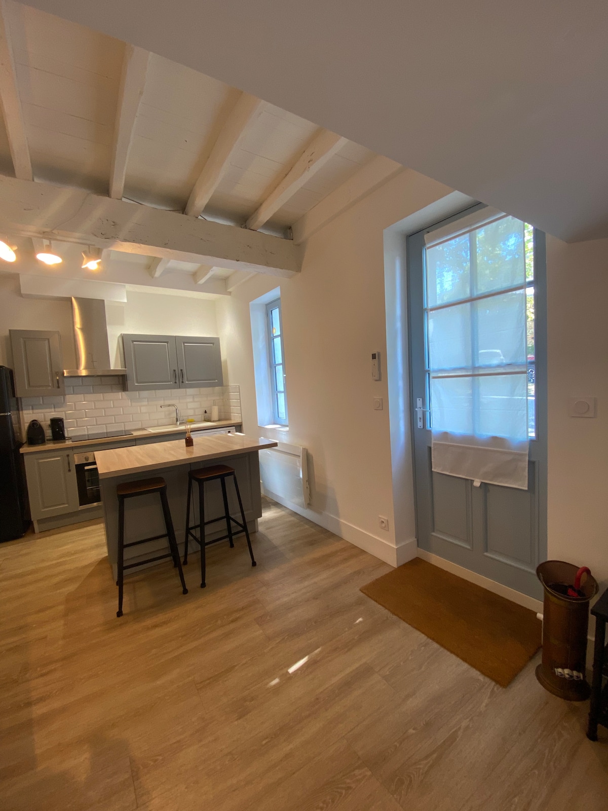 Este alojamiento tranquilo ofrece una estancia relajante para toda la familia, pero también para otros viajeros que buscan un lugar cerca de la ciudad y el campo con todos los servicios cerca. Amplia sala de estar con vistas a una gran terraza de madera, cocina abierta y equipada, dos dormitorios con armarios, un despacho, cuarto de baño y aseo.