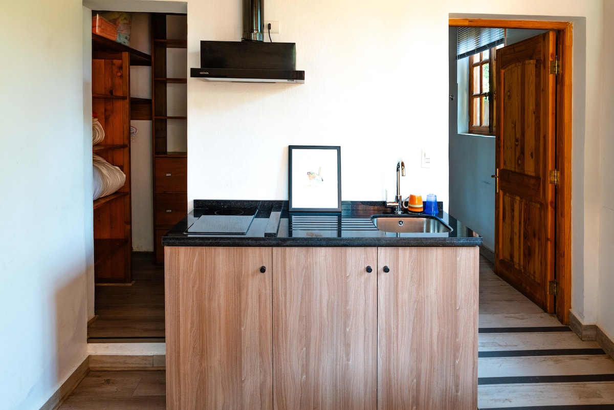 Our guest suite, ideal for singles or couples, is independent from our house and has a private entrance. The guest suite has a modern exterior and a comfortable interior. Our house is located on an old family farm near the beach (1.5 blocks to the beach). Our location is close to several beachside restaurants and bars. The little kitchen has a toaster oven, microwave, electric kettle and frigobar (small fridge) but does not have a cooktop. No es apropiada para niños menores de 7 años.