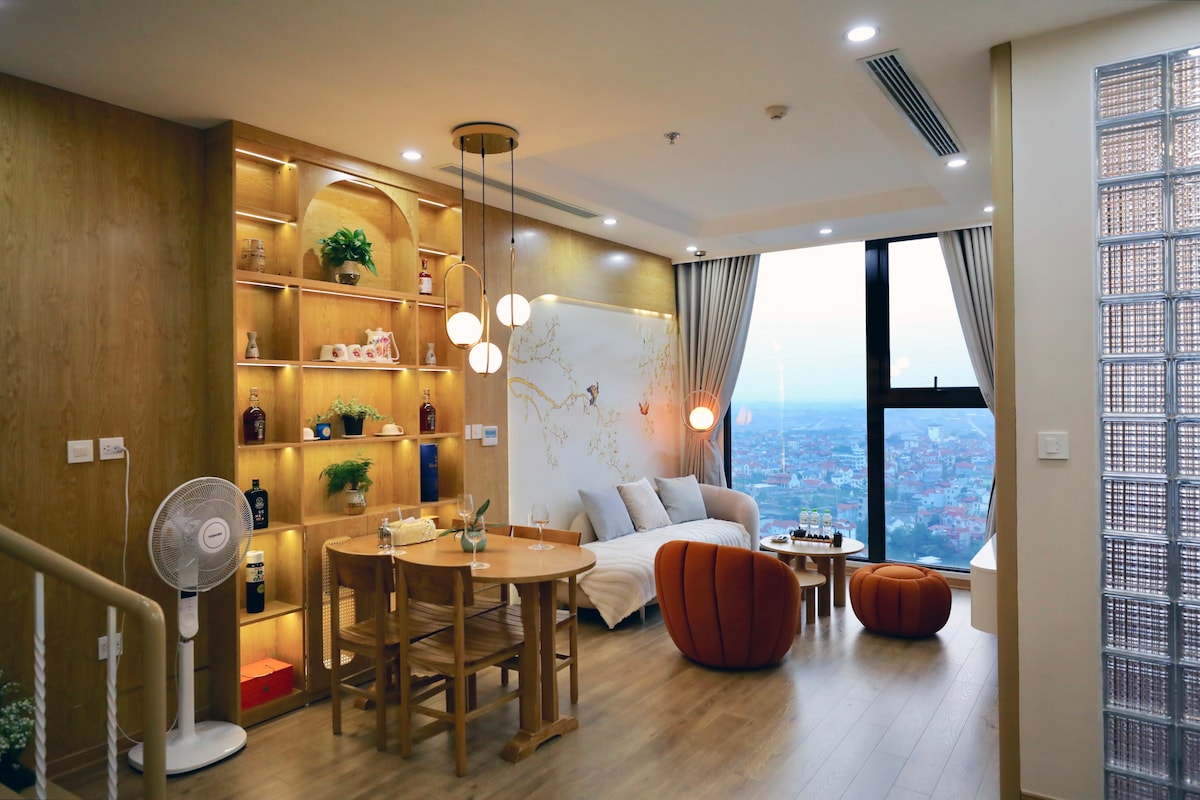 SKY VILLA DÚPLEX en * * Ecopark * * – un espacio de alta categoría con jardín aéreo, piscina, golf y vistas al atardecer. 03 dormitorios (1 principal con oficina), cocina totalmente equipada, mesa de comedor abierta a un balcón abierto. Situado en una zona urbana verde y tranquila, con muchas instalaciones de entretenimiento, a solo 15 minutos del centro de Hanoi. Perfecto para familias y grupos de amigos que quieren disfrutar de unas vacaciones como en un resort de 5 estrellas, pero cerca del centro. Y por si fuera poco, somos S.Sens Homes, comprometidos a ofrecerte unas vacaciones perfectas.