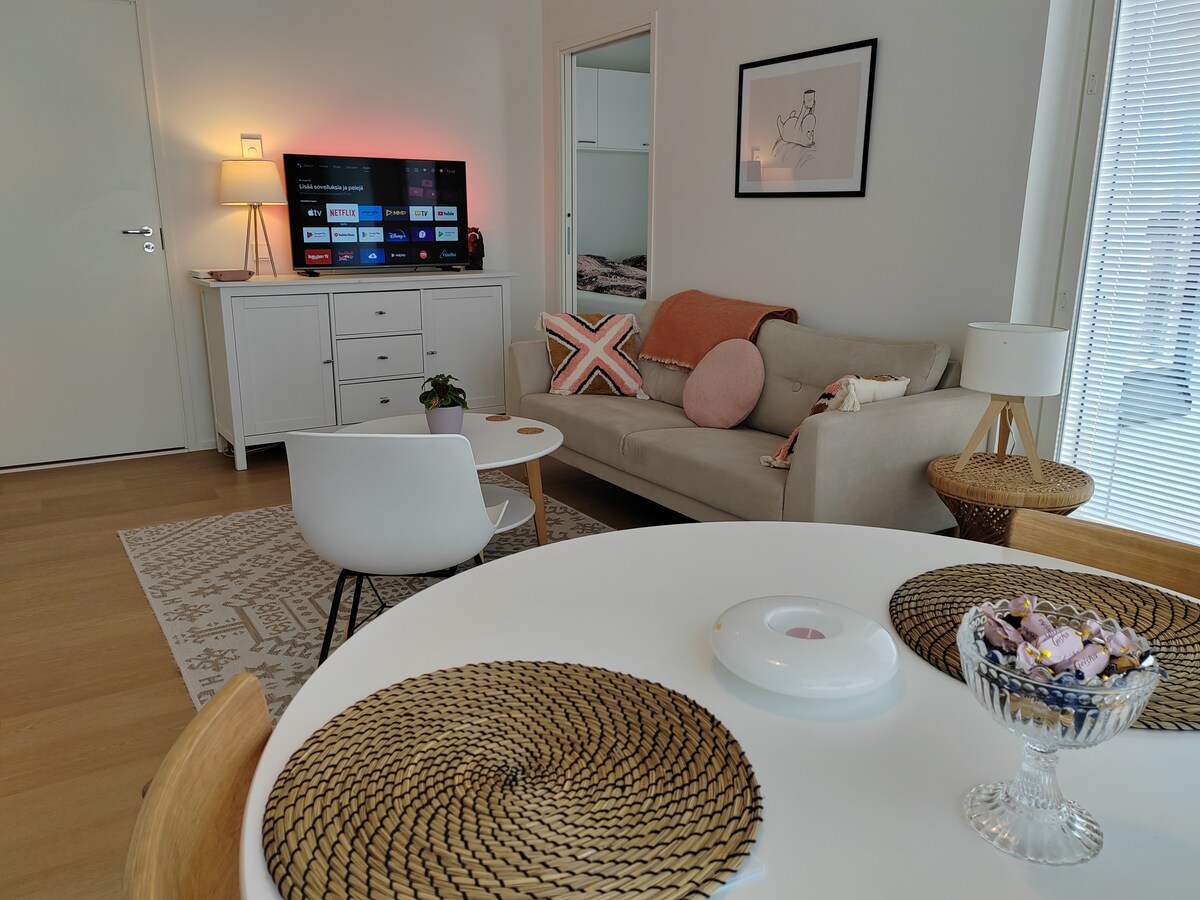 Bienvenido a este acogedor apartamento de 26,5 m² cerca del aeropuerto de Helsinki (a 6 minutos en tren), a 25 minutos del centro de la ciudad de Helsinki y a solo 250 metros de la estación de Kivistö. La sala de estar cuenta con una cama doble y un cómodo sofá, con capacidad para 2 personas. La cocina moderna y el baño están totalmente equipados para tu comodidad.