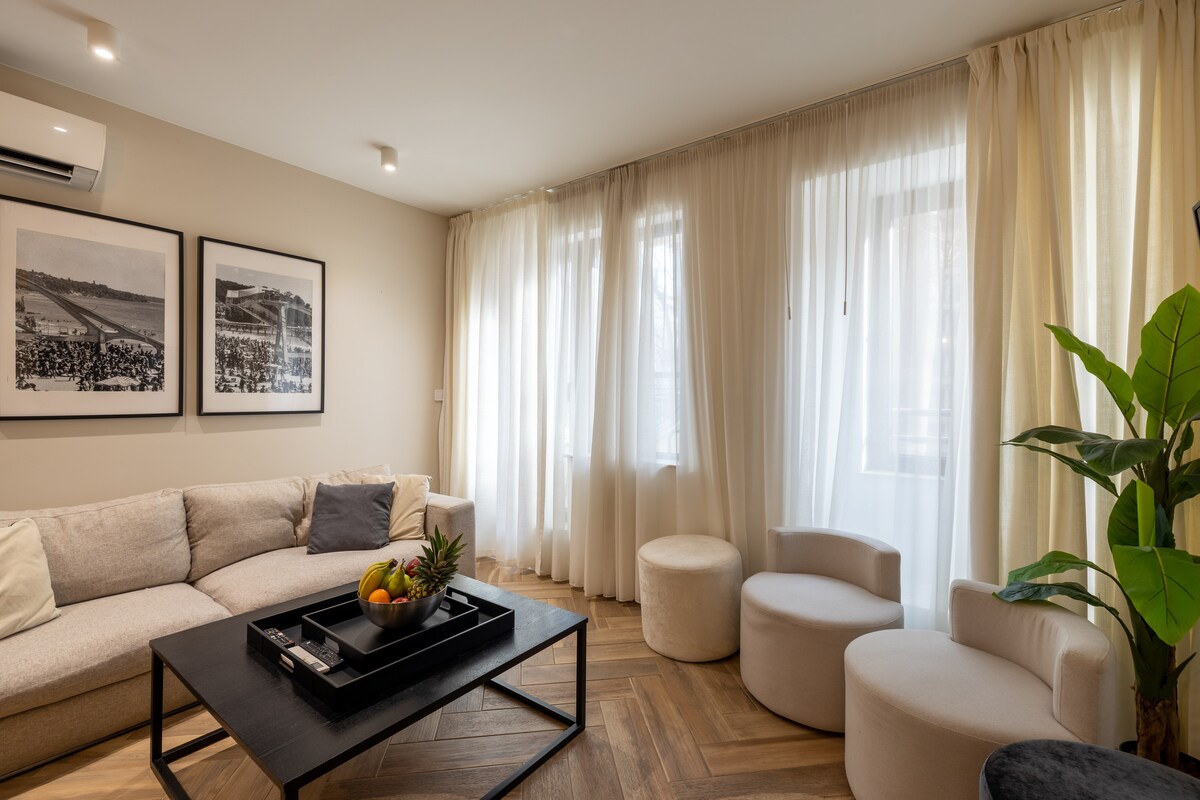 El apartamento está situado en la tercera planta (sin ascensor) de un edificio de los años 70. 80 metros cuadrados, amplio y amueblado con atención al detalle. La ubicación te permite estar a pocos pasos de la playa🏖, la vida nocturna🍸, el jardín marino y el puerto marítimo, donde encontrarás los mejores restaurantes de la ciudad. Además, la calle peatonal principal está a 2 minutos a pie.
