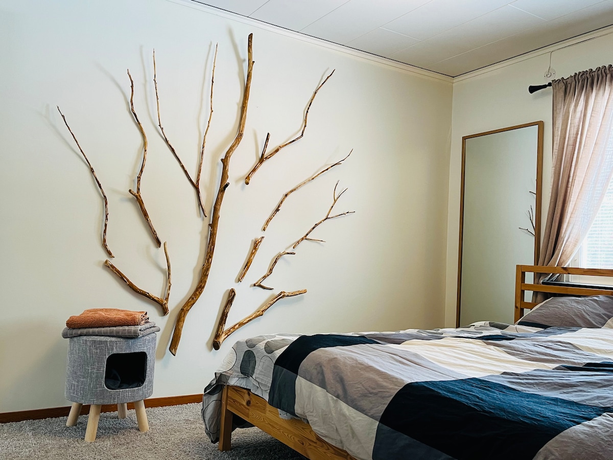 Rymligt, mysigt, centralt hus- nära stad och skog.
