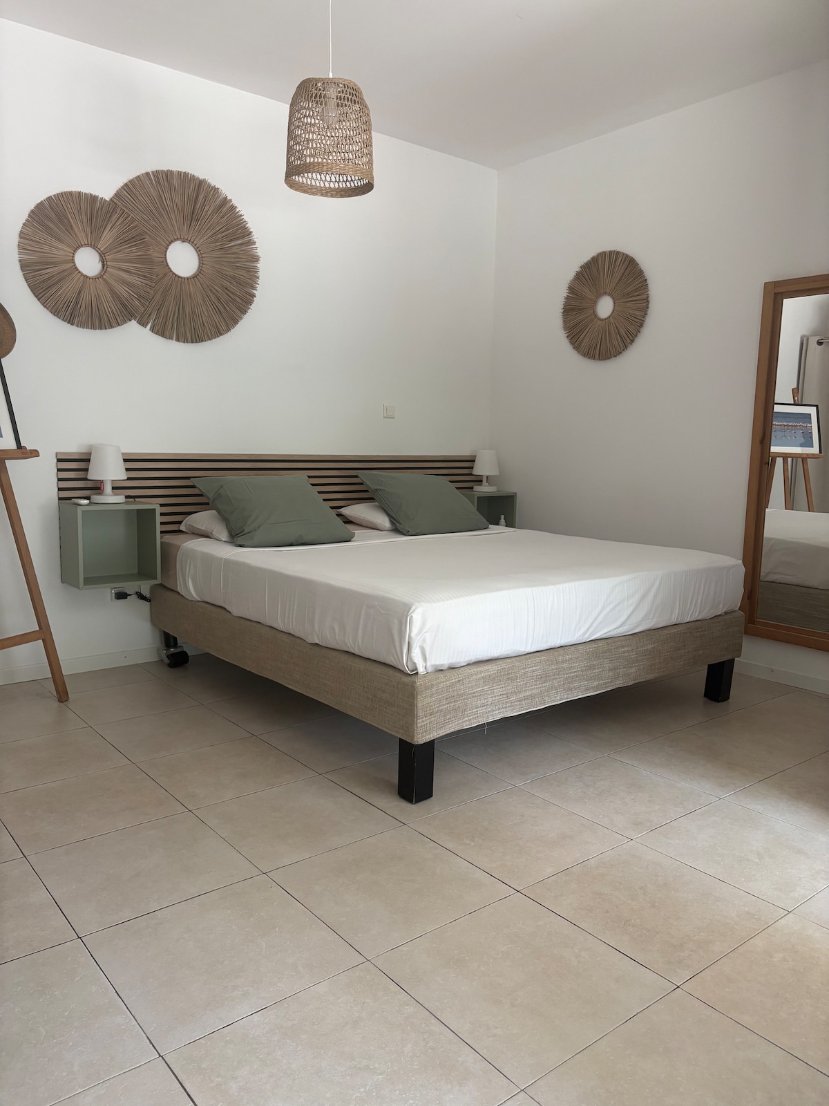 Estudio de 31 m2 en una masía completamente independiente con su entrada y jardín independientes. Si viaja solo o en pareja y busca tranquilidad y un lugar ideal para visitar la Camarga y sus alrededores, este estudio con todas las comodidades, con su cama de 180x200, es para usted. Este estudio está a 10 minutos de Aigues-Mortes, a 25 minutos de las playas, a 25 minutos de Saintes Marie de la Mer. Una pequeña anécdota: el nombre de nuestras casas de campo, «tadorne», significa ser el pato más grande🦆.