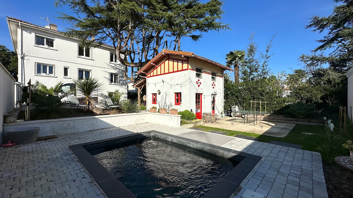 En un entorno verde y relajante. Relájese en esta casa en el corazón del barrio de Platin con su piscina privada y asegurada por una persiana enrollable eléctrica, piscina climatizada a 28° desde las vacaciones escolares de abril hasta las vacaciones de Todos los Santos (dependiendo del clima). Situado a 100 m del mar (vistas al mar) a unos 250 metros de la playa de Platin, a 500 metros de la playa de Bureau (playa principal de St Palais) y a 600 metros del mercado y del centro de la ciudad o del famoso restaurante Chez Bob.
