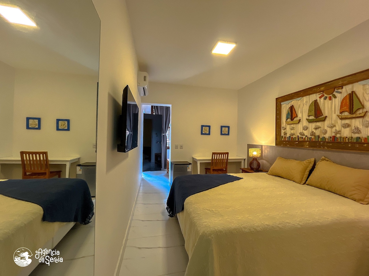 Bungalow cerca de la playa en una comunidad cerrada con seguridad las 24 horas. Cocina con minibar, estufa y artículos básicos. Acogedora suite con TV, cama tamaño king, jacuzzi y balcón. Sala de estar con sofá cama y balcón, junto a la zona de conservación. Condominio con piscina, gimnasio, parque infantil, cancha de tenis y multideportiva, sauna, sala de juegos y sala de televisión. Servicio de traslado a la recepción, frente a la playa. Terraza en la playa de Curral con mesas, sillas y ducha de agua dulce exclusiva para los huéspedes de Yacamim.