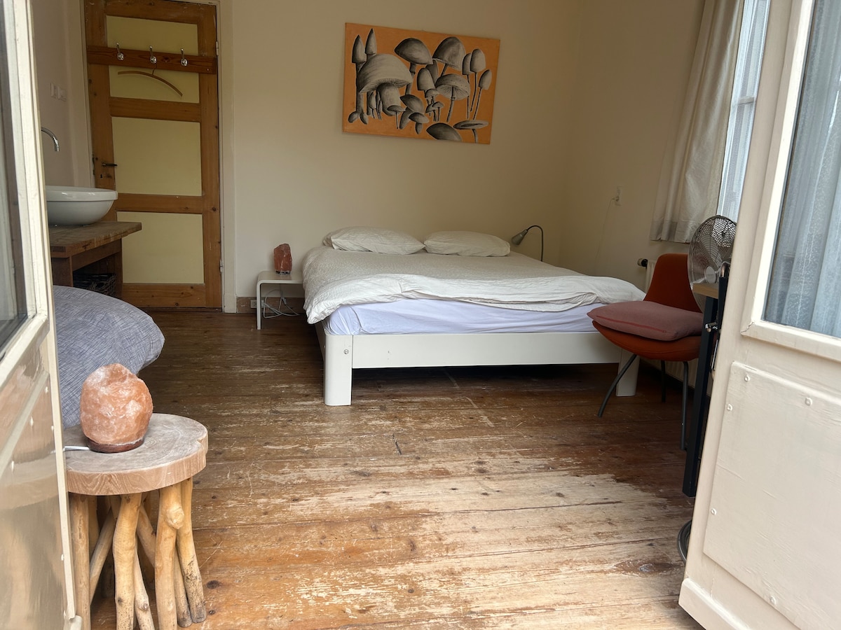 Bonita casa de huéspedes independiente (ubicada en la parte trasera de nuestro jardín) con porche y vistas a los prados, a poca distancia del centro de Amersfoort, con transporte público justo en la puerta. Máximo 2 plazas de aparcamiento gratuitas en el propio terreno. Se puede reservar para 1 a 4 personas. Es posible dormir en dos camas individuales (80x200) en el altillo y en un lujoso sofá cama doble (160x200) con colchón completo. Hermosas oportunidades para andar en bicicleta y caminar, y la hermosa Amersfoort a poca distancia.