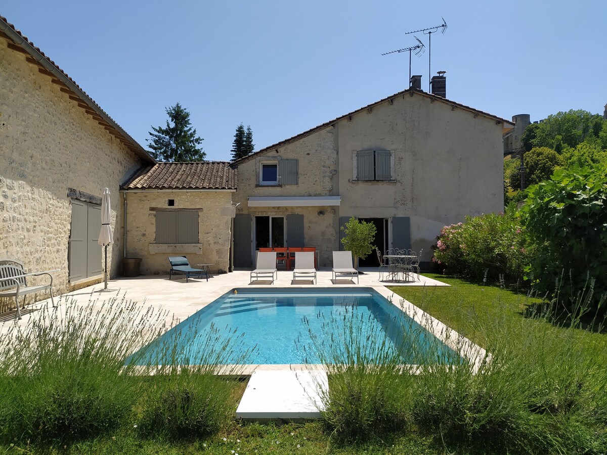 Luxury French gite, just outside the lovely market town of Aubeterre. Newly refurbished to a very high standard, with a large open-plan kitchen/family room , 1 Double & 2 Twin bedrooms (all with private shower room). 10 x 5m HEATED (May and September other times on request at a charge) pool over looking open fields and large patio. Walk into the local village to make use of the local shop for your fresh morning bread and croissants etc, or enjoy rivers, chateau and vineyards further afield.