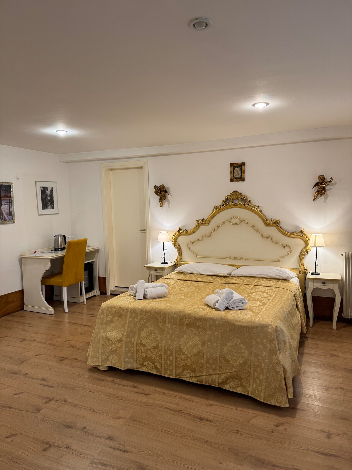Acogedora habitación con entrada privada y baño privado ubicada en el tercer piso de un edificio del siglo XVI en la zona artística y romántica de San Polo, en el corazón de Venecia. Céntrica, pero en un barrio muy típico, perfecto para encontrar tu hogar en Venecia: puedes llegar a los principales puntos de interés en pocos minutos a pie o en autobús acuático, con la parada a menos de un minuto.