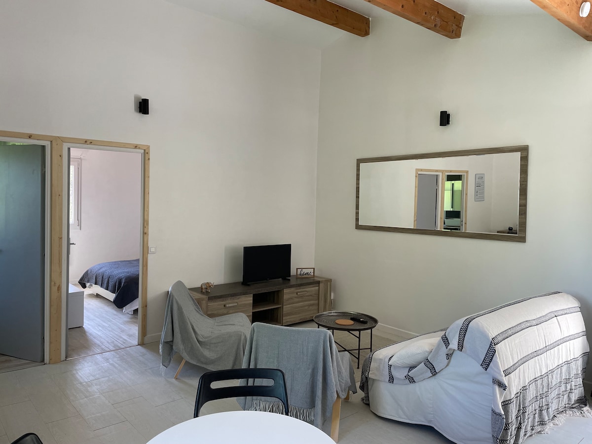 Alojamiento T2 de 50 m2 en la parte superior de la villa en un pueblo de la Provenza. En la tranquilidad de una pequeña urbanización, aparcamiento gratuito, acceso independiente, pequeño balcón orientado al sur y zona exterior a la sombra de los árboles. Apartamento renovado este año, equipado con una cama doble y vestidor, un sofá cama en la sala de estar, equipamiento para bebés a su disposición bajo petición.