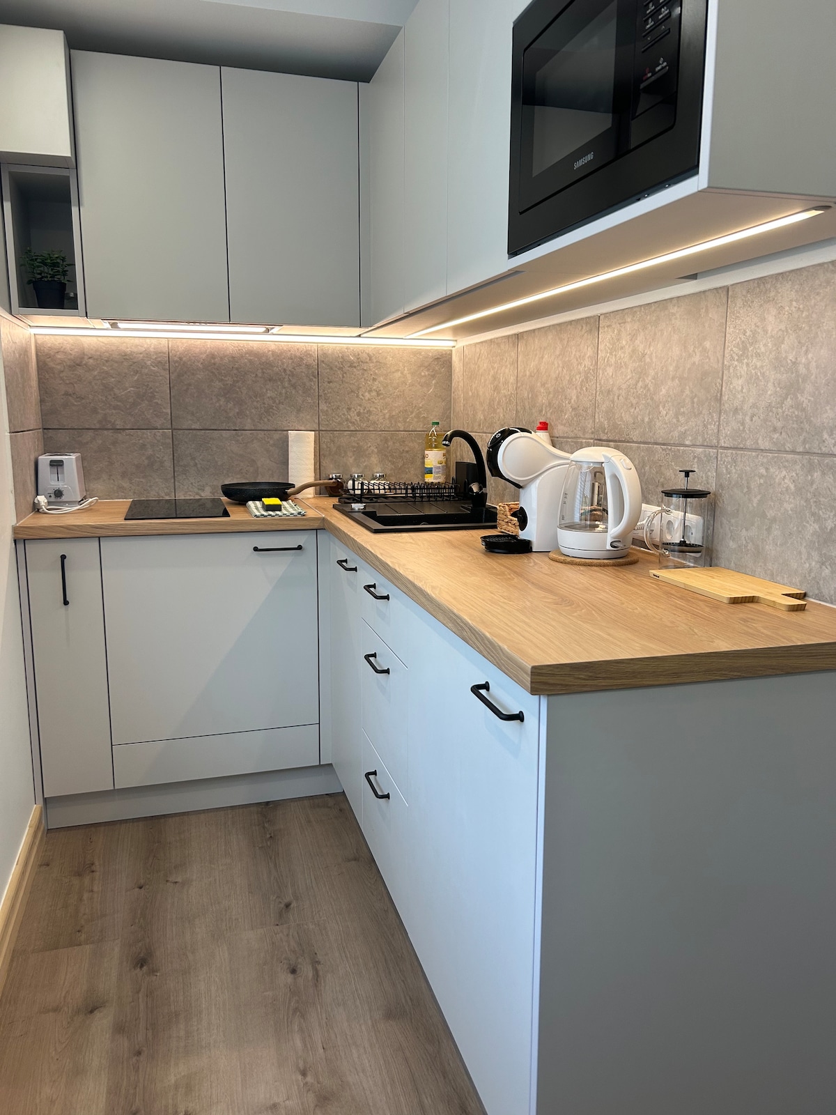 Apartamento recientemente renovado en el corazón del casco antiguo de Ventspils, la zona más encantadora y vibrante de la ciudad. A solo 2-4 minutos a pie de las mejores cafeterías locales, panaderías, el paseo del río Ventas, el mercado, el cine, el spa, la piscina, el gimnasio, la playa a 15 minutos: todo lo que necesitas está a tu puerta. Diseñado para ser acogedor y moderno. Está totalmente equipado con comodidades de alta gama, como una cafetera premium, lavavajillas, lavadora/secadora y todo lo que necesitas para unas vacaciones relajantes o un viaje de trabajo productivo.