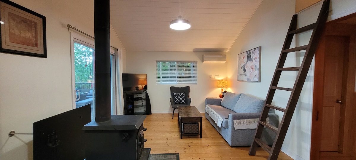 Cabaña moderna de estilo estudio al aire libre privada con una gran terraza envolvente, vistas pintorescas al lago y mucha privacidad arbolada. Lugar ideal para que una pareja, familias pequeñas, pintores, escritores, yoguis y surfistas de remo escapen a un entorno sereno junto a un lago con todas las comodidades. El alojamiento Horario de reserva de temporada de verano: Semanalmente: domingo a domingo Semanalmente: viernes a viernes Días laborables: domingo a viernes Fines de semana: viernes a domingo Check-in/out solo los viernes y domingos.