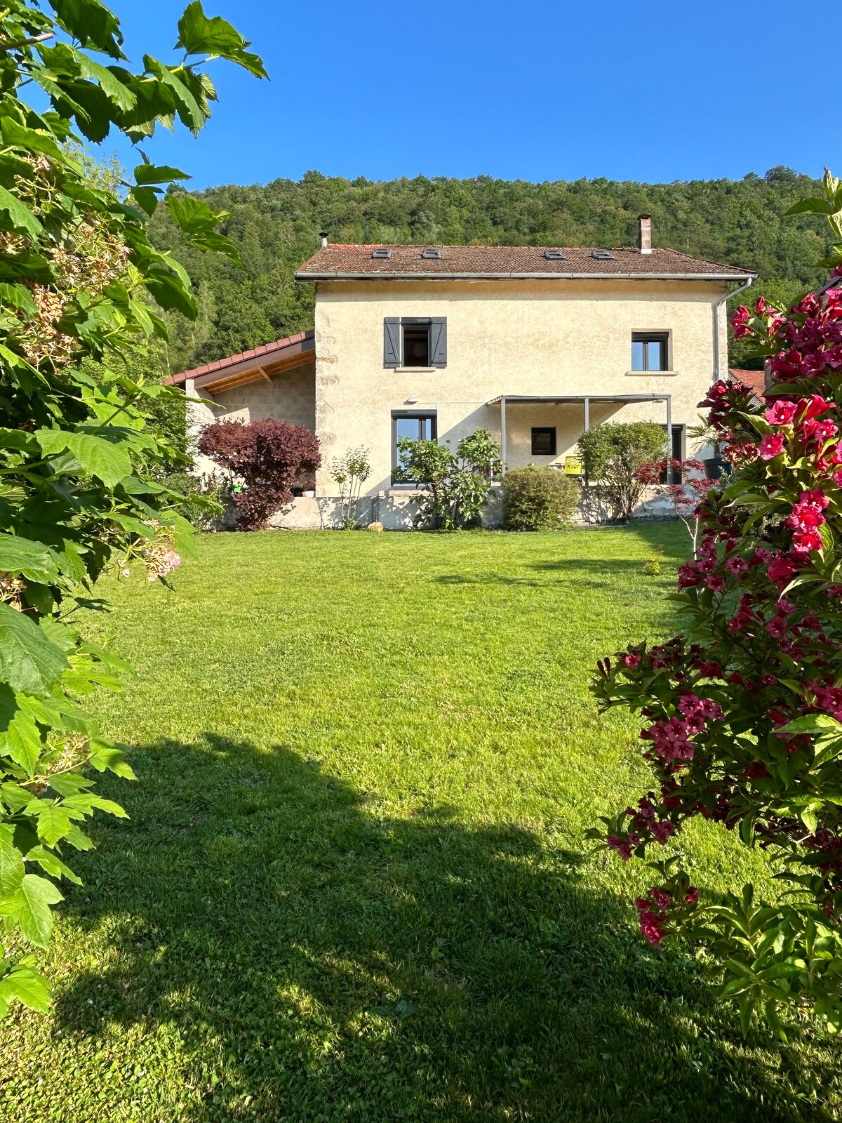 En el corazón del macizo del Alto Jura, en una aldea tranquila, a 900 m de altitud, pequeño castillo de 100 m², completamente restaurado por dentro y por fuera, con todas las comodidades, sin vecinos. Salida de rutas de senderismo desde el alojamiento. En el jardín hay una pequeña dependencia donde se ha instalado un jacuzzi para que pueda disfrutar de momentos de relajación. Venga a descansar en este alojamiento atípico Con garaje cerrado para su coche, moto, bicicleta , equipado con una toma de carga lenta para vehículos eléctricos.