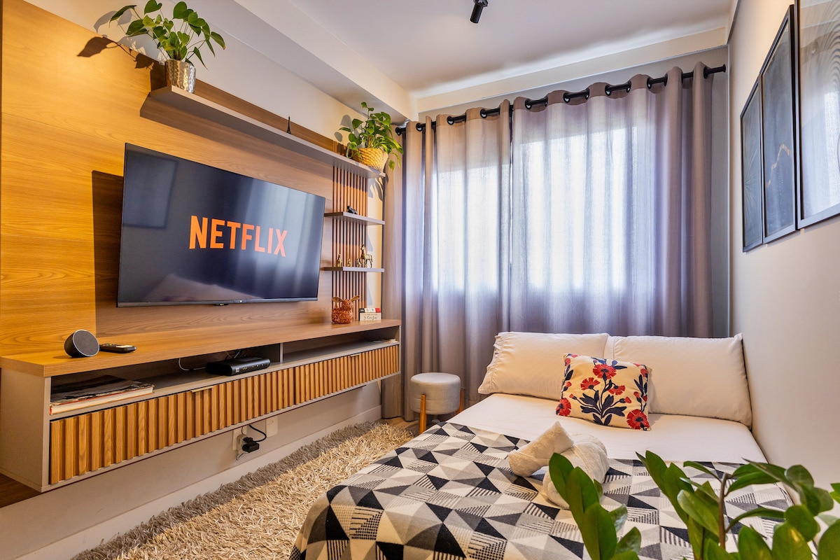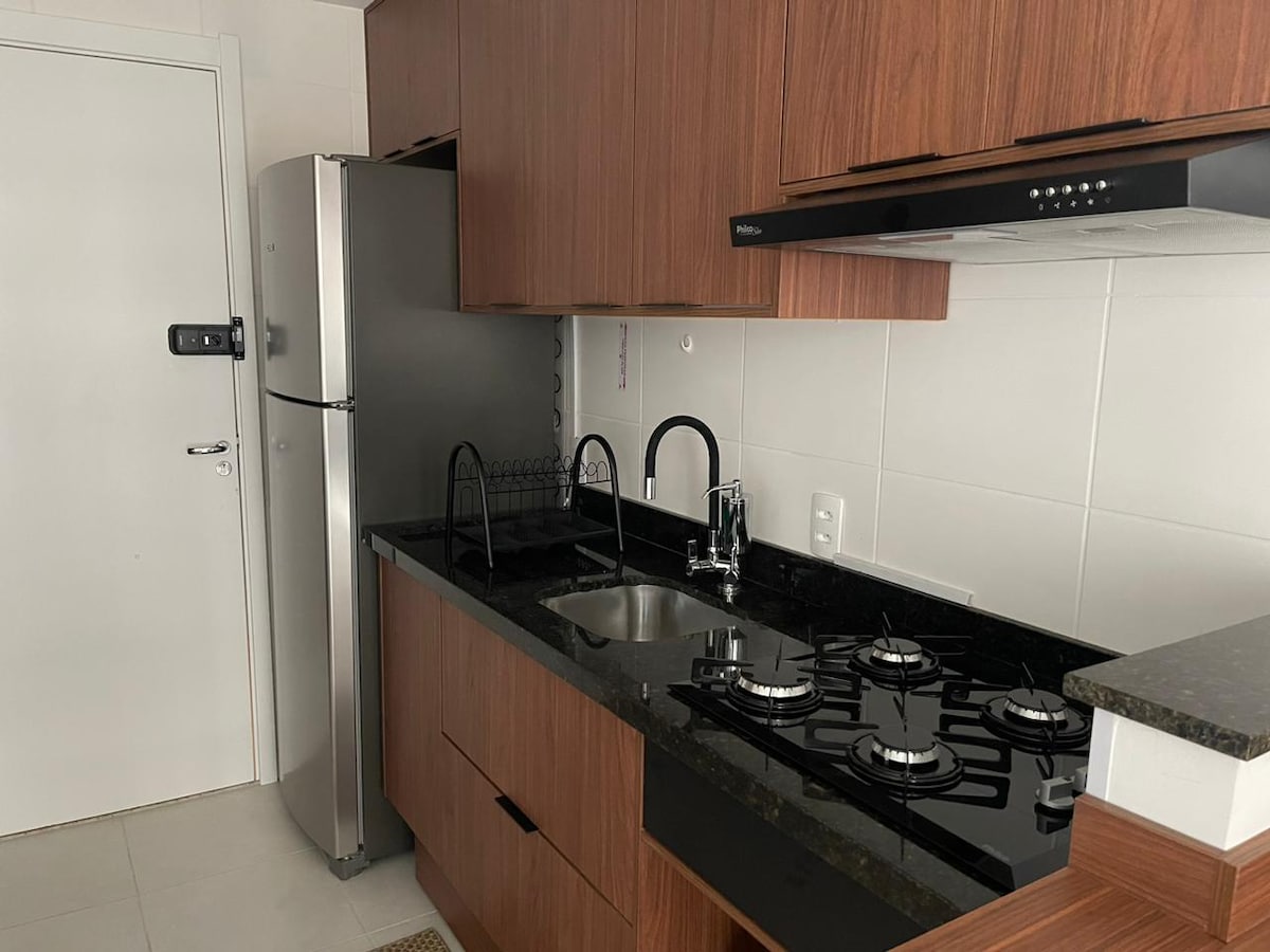 Relájate en un apartamento tranquilo y acogedor, a solo unos pasos de Transamérica Expo, Vibra y Teatro Arena BTG. Disfruta del balcón, el aire acondicionado y la ropa de cama y toallas de primera calidad. Comienza el día con un espresso y cocina con facilidad en la cocina equipada. Fácil acceso en transporte público o en coche, con aparcamiento de pago. Distancias: Transamérica Expo a 7 minutos a pie Vibrar 3 min Tokyo Marine Hall a 5 minutos en Uber Consulado 10 min Shopping Morumbi 12 min. Aut. Interlagos 20 min.