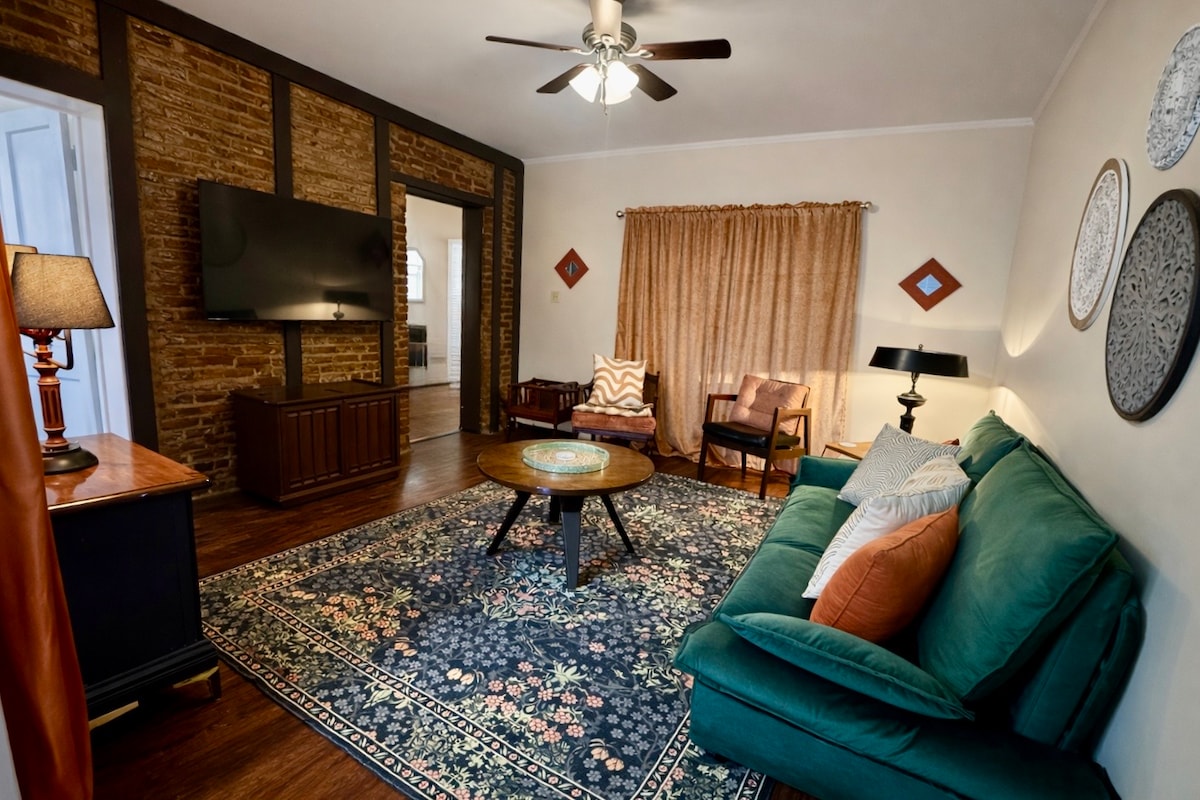 Ubicado en el distrito histórico de Vicksburg, refleja el encanto sureño. Alquila la suite 1, la suite 2 o toda la casa. Las unidades se alquilan por separado y cada una tiene una sala de estar, cocina completa, 1 baño, 2 dormitorios (1 cama tamaño queen/2 camas individuales con cama nido o 2 juegos de literas). Situado a 1 manzana al este del Museo del Antiguo Palacio de Justicia, a 1 manzana al oeste del centro de la ciudad (tiendas/restaurantes) y a 2 manzanas al oeste del Museo del Antiguo Depósito y de los murales frente al río. Relájate en las mecedoras del porche delantero o en la terraza trasera mientras el sol se pone en el río y se desvanece en el horizonte.