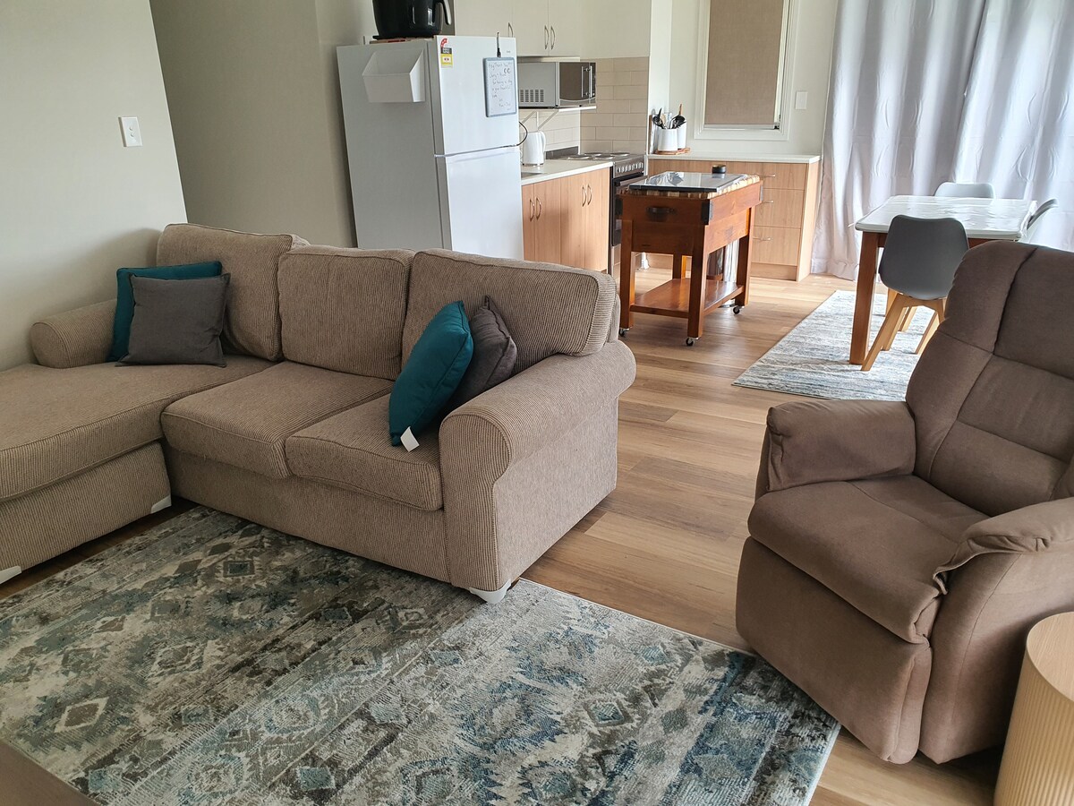 Unidad privada de 2 dormitorios, 4 camas y parque, desayuno en la playa/vino