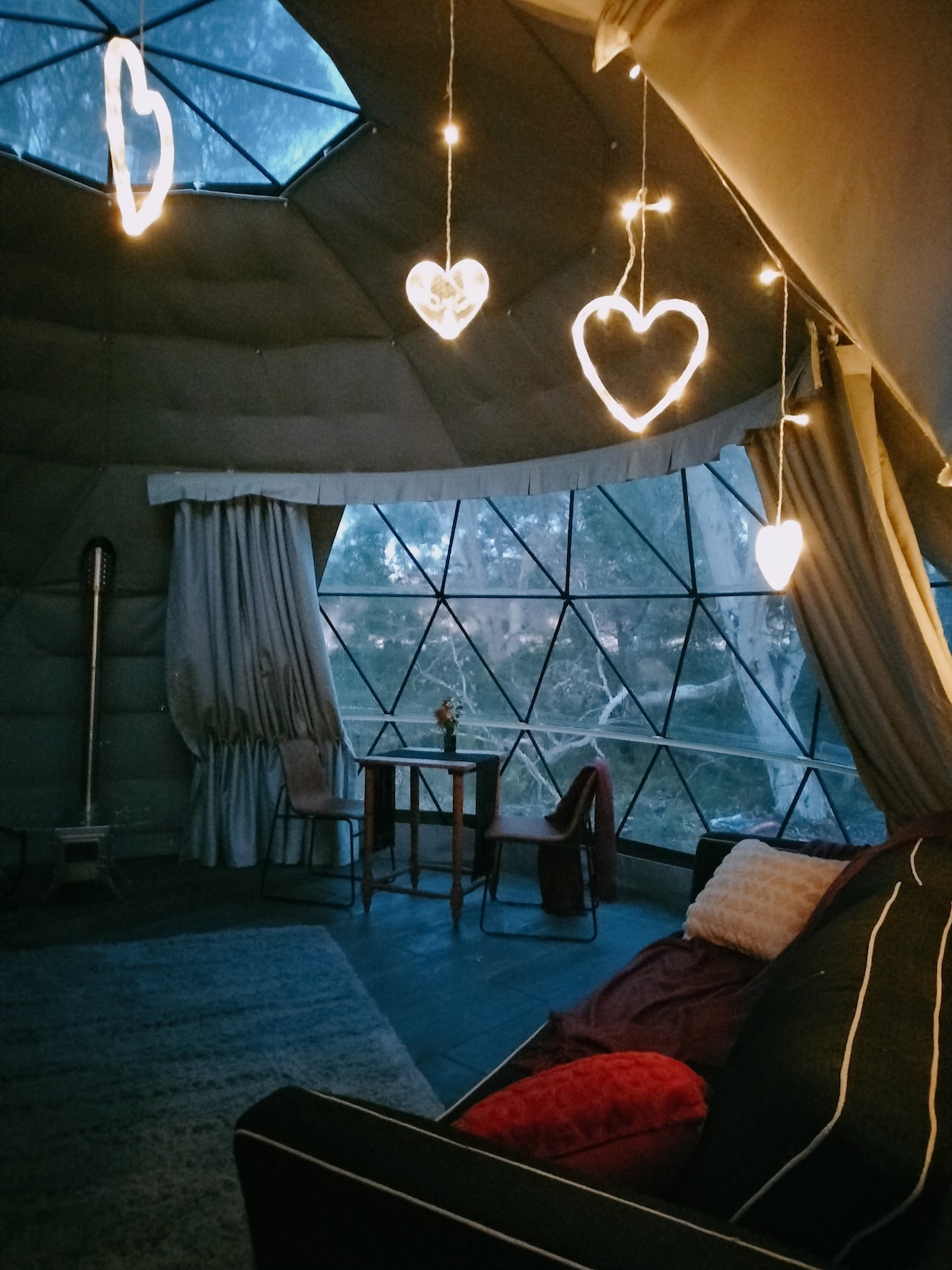 This memorable single or couples dome stay is truely extraordinary. An experience like no other to tick off your bucket list. Perched on the hillside above Yarra Junction with a stunning view of the Yarra Valley. Within walking distance to the shops, a short drive to the rainforest walks, the snow at Mt Donna Buang, Healesville sanctuary, exclusive cycling tracks, the redwood forest and so much more. This intricate dome stay is the perfect weekend getaway. Just over an hour of Melbourne CBD.