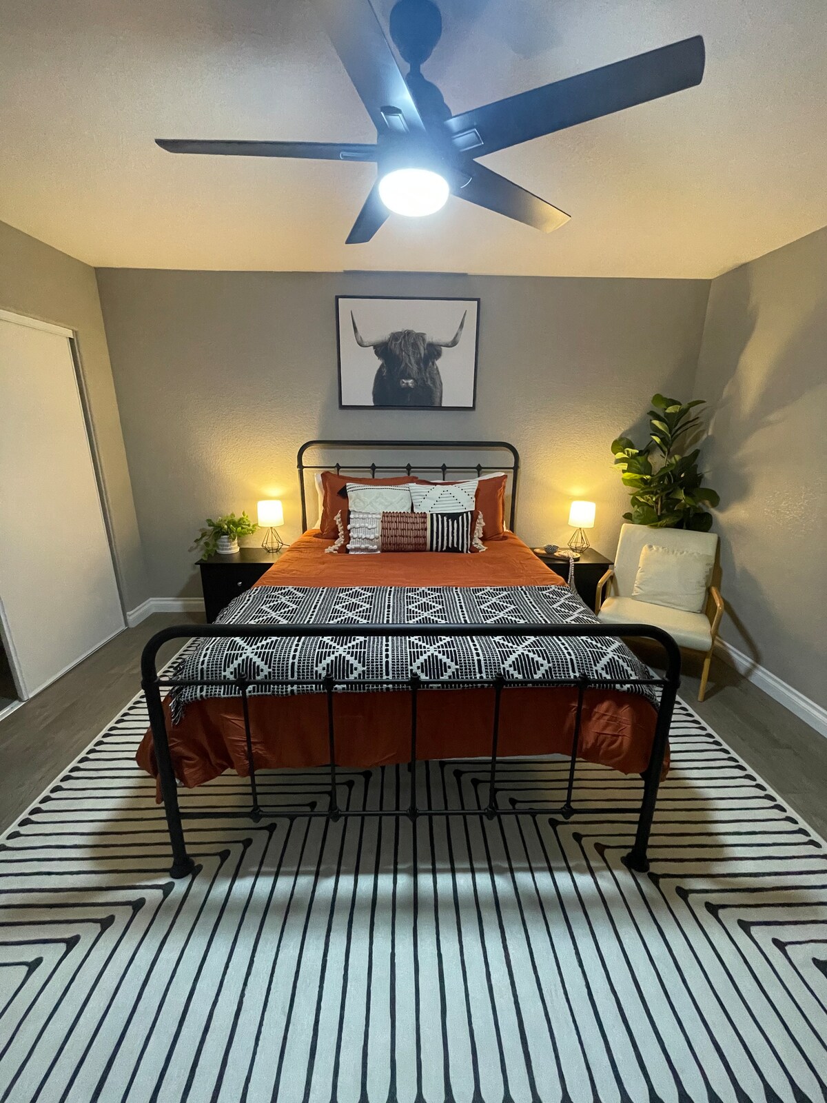 Suite de invitados 1BR/1BA ~ 350 pies cuadrados Entrada privada (entrada sin llave) Termostato personal Aperitivos, bebidas y artículos de tocador de cortesía Colchón Queen Tempur Pedic con base ajustable Televisor inteligente de alta definición de 65 pulgadas en la sala de estar Televisor inteligente de alta definición de 55 pulgadas en el dormitorio Mini refrigerador Estufa doble eléctrica Máquina Keurig Juegos de mesa Escritorio