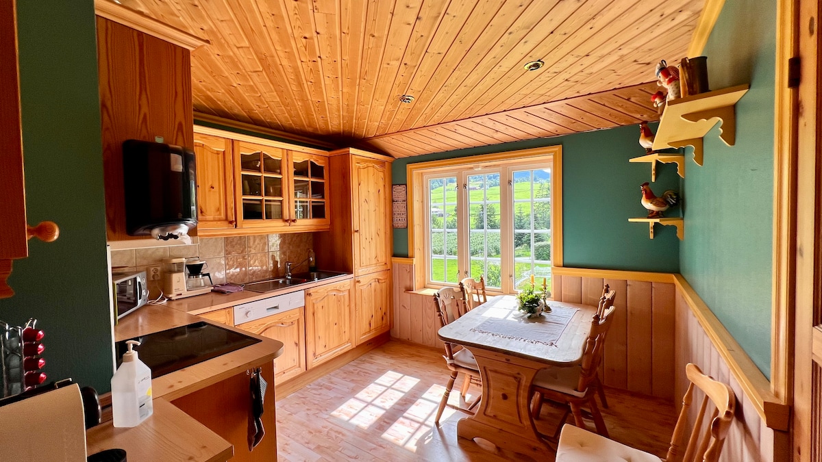 Aquí encontrarás paz con un entorno natural encantador y una vista increíble al Sognefjord. Encontrarás todo lo que necesitas para disfrutar de unas vacaciones encantadoras en Balestrand. También es útil para silla de ruedas. Aquí hay 3 dormitorios 1. Piso y una acogedora habitación de 2 pisos con 4 camas individuales. La mejor forma de viajar en esta zona es en coche . Pero tenemos un barco expreso diario desde Bergen y un autobús expreso desde Oslo. También puedes alquilar un coche en Balestrand .