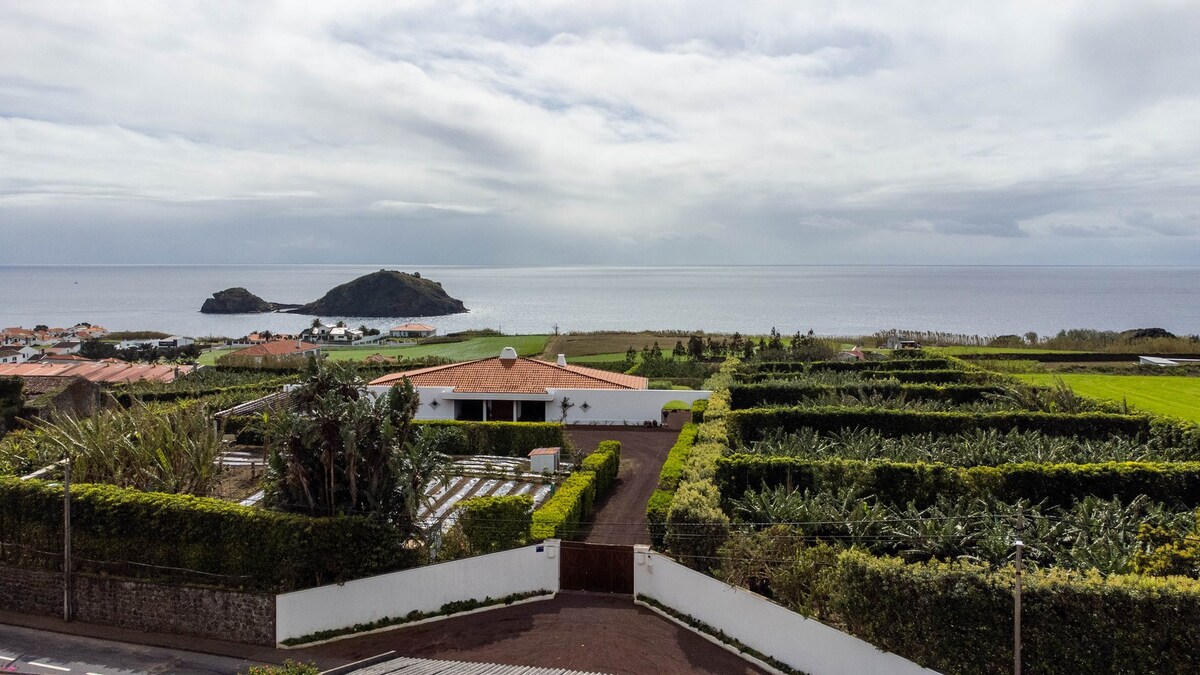Casa restaurada (antigua bodega), integrada en una finca de 5.000 m2, con una gran variedad de cítricos y otros cultivos. Gran jardín, con vistas al mar y a la montaña. Cuenta con una zona social muy amplia, ideal para familias y grupos de amigos, donde hay una mesa de billar. Muy cerca de varias playas y del centro de Vila Franca do Campo. Hay varios senderos que comienzan cerca de la casa. Situada en la costa sur de la isla de São Miguel, con fácil acceso a Ponta Delgada.