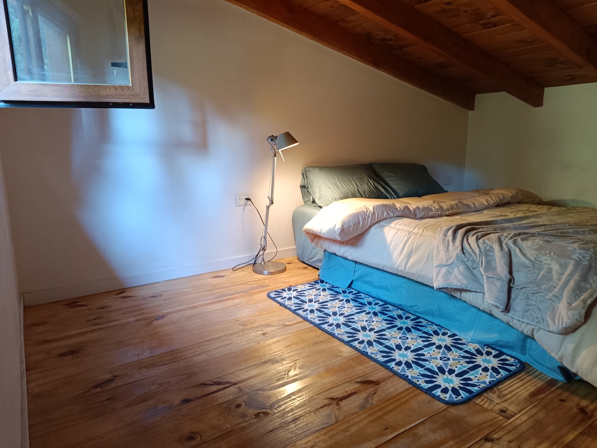 Cálida cabaña para una pareja pero alberga 3 personas. Internet es muy rápida, tenemos fibra óptica con más de 80 mg de velocidad. A pasitos de un sendero que te lleva al Rio, para pedalear, caminar. A 15 minutos del Cerro Catedral. Proveemos de dos mountain bikes para moverse con soltura por la zona. El colectivo publico esta a dos cuadras, pasa cada media hora. En la Naturaleza pero a 15 minutos caminando de cervezerias, almacenas, supermercados. NO TV. Deck hermoso para dias soleados!
