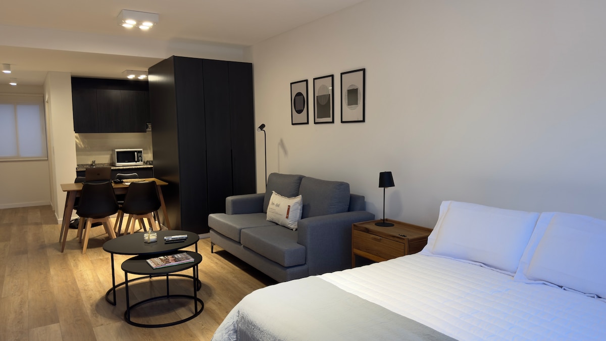 Un espacio que enamora. Viví en un estudio único en el corazón de Palermo Hollywood. Amanecé con luz natural, y disfruta del gran balcón de 7 metros rodeado de verde. Deco minimalista, cómoda cama con colchón nuevo, sábanas suaves y toallas de primera calidad y cocina equipada. WiFi alta velocidad para videoconferencias, Smart TV 45". Check-in autónomo, adaptador eléctrico, juegos y detalles pensados para tu confort. Además: Recomendaciones de los imperdibles!