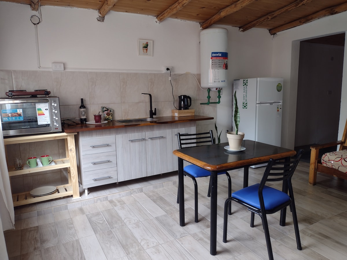 Refugio céntrico y luminoso, ideal para una estadía cómoda y sin vueltas. Renovada con dedicación, la casita ofrece cocina equipada, Wi-Fi 300 MB, Smart TV, ropa blanca de calidad y excelente ducha. Ubicada a pasos de cafés, restaurantes y atractivos como La Trochita y el parque. Estacionamiento seguro en la puerta y check-in ágil. Perfecta para parejas o viajeros solos.