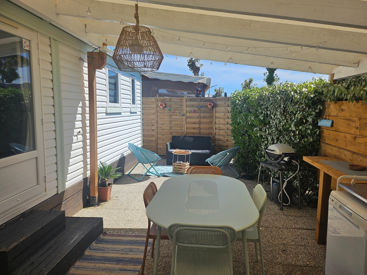 Casa móvil nueva de 35 m2 año 2023 en un camping de 4 estrellas. Impresionantes vistas al mar, playa a 100 m. Alojamiento equipado con todas las comodidades. Sábanas y toallas opcionales. Cafetera de la marca Tassimo. Piscina climatizada accesible de forma gratuita con piscina infantil. Restaurante disponible en el lugar. Zona de juegos para niños y actividades disponibles. Tienda de comestibles en el lugar. Nueva pérgola instalada en 2024 Se proporcionan bolas de petanca
