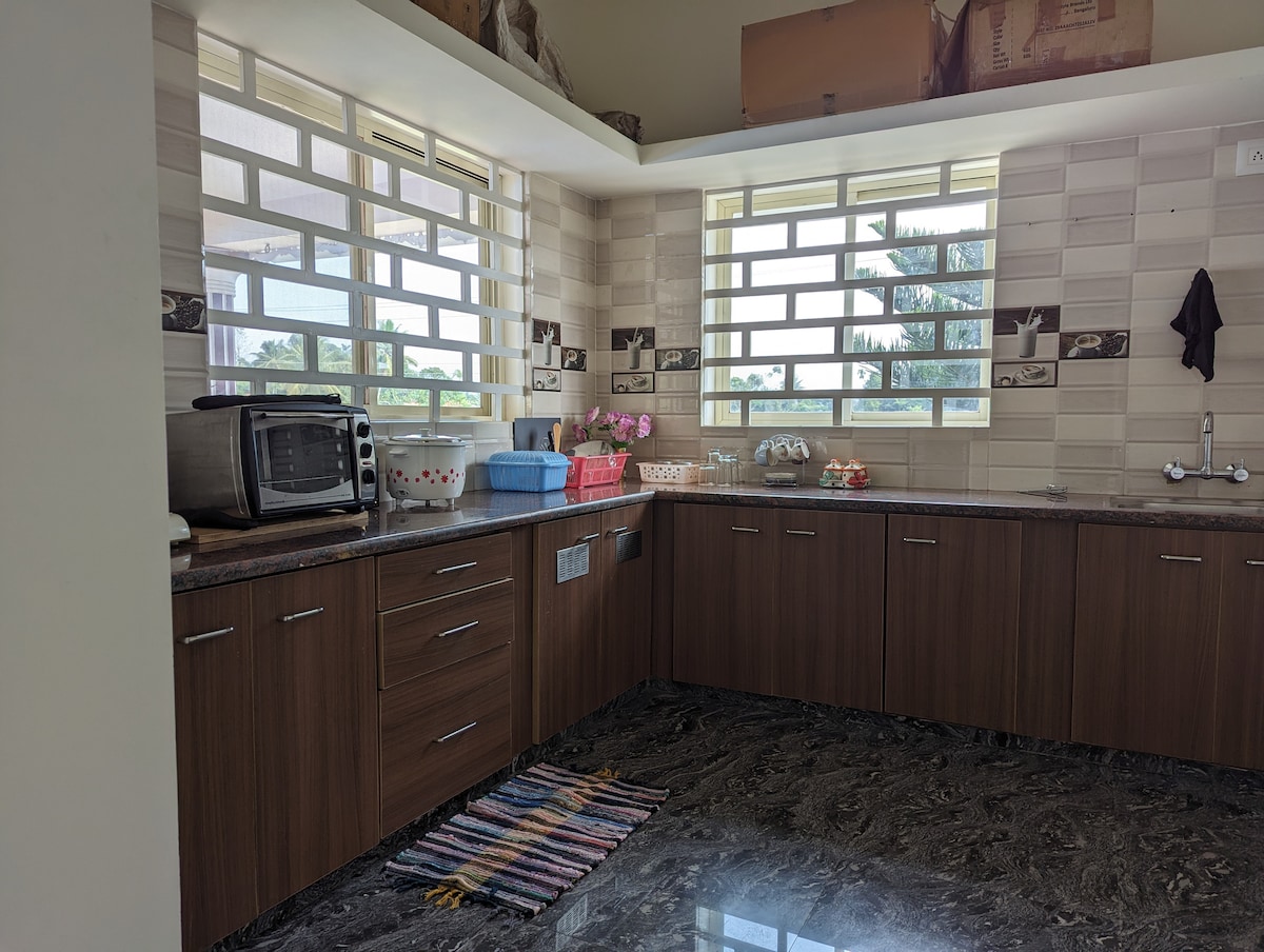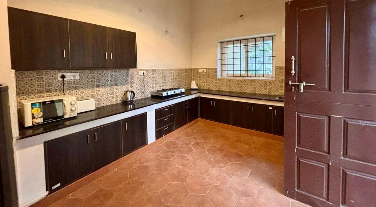 Ofrecemos nuestro espacio «SOLO» a familias o parejas. Nuestra unidad de dos plantas está situada en plena naturaleza, con vistas a un exuberante valle verde y a una finca cafetera en Ammathi, Kodagu. Este anuncio de la planta baja es una configuración de 2 dormitorios con zona de estar; baños adjuntos en ambas habitaciones; cocina equipada con nevera, estufa, purificador de agua; UPS+Genset; fibra InterNet. NOTA: Las habitaciones se pueden alquilar por separado. Envíame un mensaje para obtener precios con descuento. Mi alojamiento también está preparado para estancias de trabajo/vacaciones más largas.