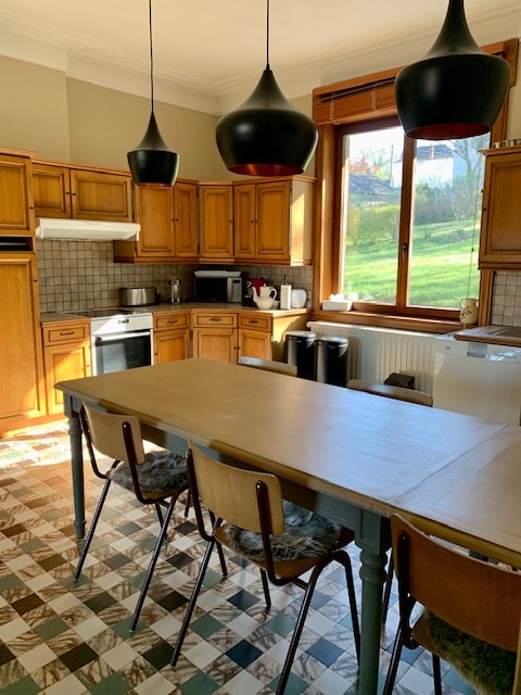 Retiro 🌿 romántico en un jardín | Chimenea, bicicletas y vistas Escápate a este elegante refugio a nivel del jardín en una encantadora casa de estilo inglés. Rodeado de naturaleza con vistas panorámicas, cuenta con una estufa de leña, ropa de cama de primera calidad, electrodomésticos SMEG y un jardín privado. Disfruta de cervezas artesanales gratuitas y chocolate, cielos estrellados junto a la chimenea y paseos por el bosque. Bicicletas gratuitas incluidas. Tu anfitrión multilingüe hará que tu estadía sea tranquila, romántica e inolvidable. Experimenta la magia de la verdadera tranquilidad.