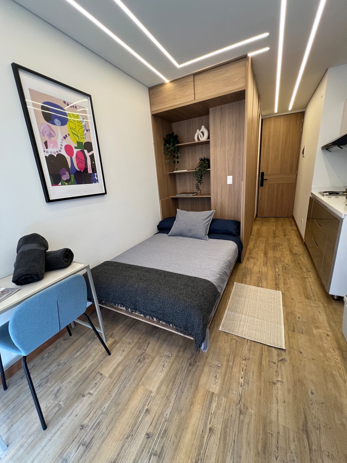 Moderno aparta-estudio a 10min 🚶♂️del parque la 93. Recien remodelado por manos de diseñador 👨🎨 , perfecto para estancias cortas o largas. Cerca de restaurantes, bares y centros comerciales. ✅ agua caliente ✅ 2 Smart TV ✅ cocina full equipada ✅ internet alta velocidad ✅ Estacionamiento privado gratuito. ✅ lavandería (pago adicional) ✅ café gratis Durante el día, puede haber ruido de construcción en el edificio contiguo. Agradecemos tu comprensión. Escríbenos