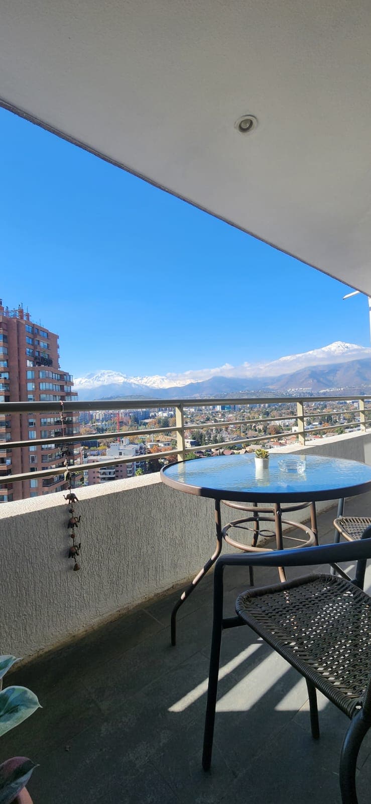 Despierta con vistas espectaculares a la cordillera y relájate con atardeceres únicos desde tu balcón en Vitacura. A pasos de Parque Arauco, Alto Las Condes y los mejores restaurantes. 2 cómodas habitaciones, 2 baños, WiFi, Smart TV y estacionamiento privado. Ideal para parejas, familias o trabajo remoto. 📍 Vitacura – Zona segura 🌄 Vistas & atardeceres 🚿 2 baños (Bañera + ducha) 🍽️ Cocina equipada ⚡ WiFi 🚘 Estacionamiento privado
