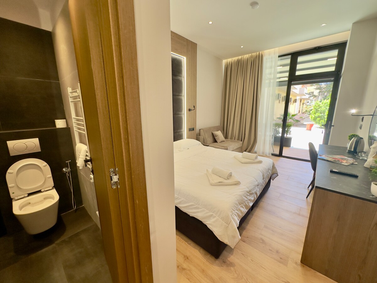 ¡Despiértate con impresionantes vistas al mar en el corazón del animado paseo marítimo de Vlora! Nuestras luminosas y modernas habitaciones con vistas al mar están a solo unos pasos de la playa, los restaurantes, los bares y todo lo que necesitas para relajarte. Disfruta de tu café matutino en el balcón con vistas al mar Jónico o da un paseo al atardecer por el paseo marítimo. Cada habitación cuenta con una cómoda cama, aire acondicionado, wifi rápido y un baño privado, perfecto para parejas, viajeros solitarios o nómadas digitales que buscan relajarse junto al mar.