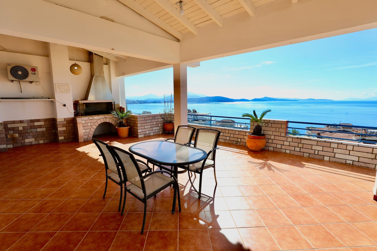 Lujosa villa de 2 pisos frente a la playa dentro de Bougainville Bay Resort con impresionantes vistas al mar Jónico y a la isla de Corfú. Cuenta con 2 dormitorios, baño completo, enorme terraza a pocos metros del mar. Incluye estacionamiento privado con escrituras, pisos de granito italiano en todas partes, cocina de diseño, TV 4K de 55 pulgadas con Netflix y muebles nuevos. A metros del mar, con internet de fibra gratuito (WiFi), lavandería en la unidad y servicio de limpieza. Acceso a piscinas, spas y sombrillas de playa (tarifa adicional).